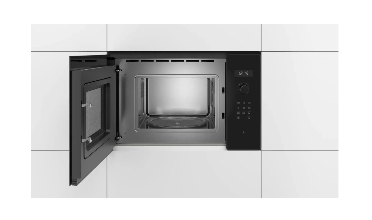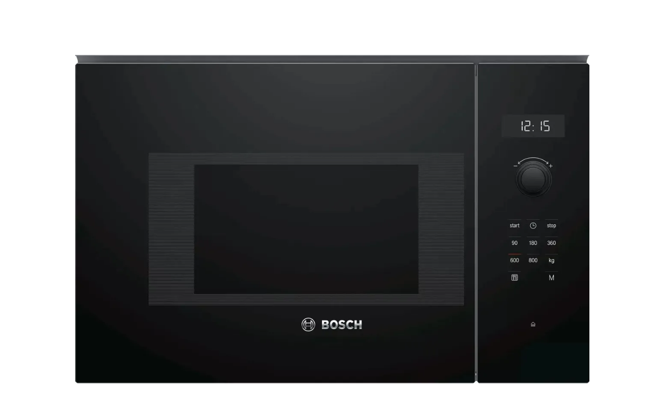 Встраиваемая микроволновая печь Bosch BFL524MB0 выпущена в привлекательном чёрном матовой цвете. Поэтому выглядит актуально и современно. Она относится к линейке Serie 6, отличающейся высокой функциональностью. Объём прибора достаточно скромен — 20 л. Поэтому он подойдёт для привычного разогрева пищи и приготовления небольшого по объёму блюда.