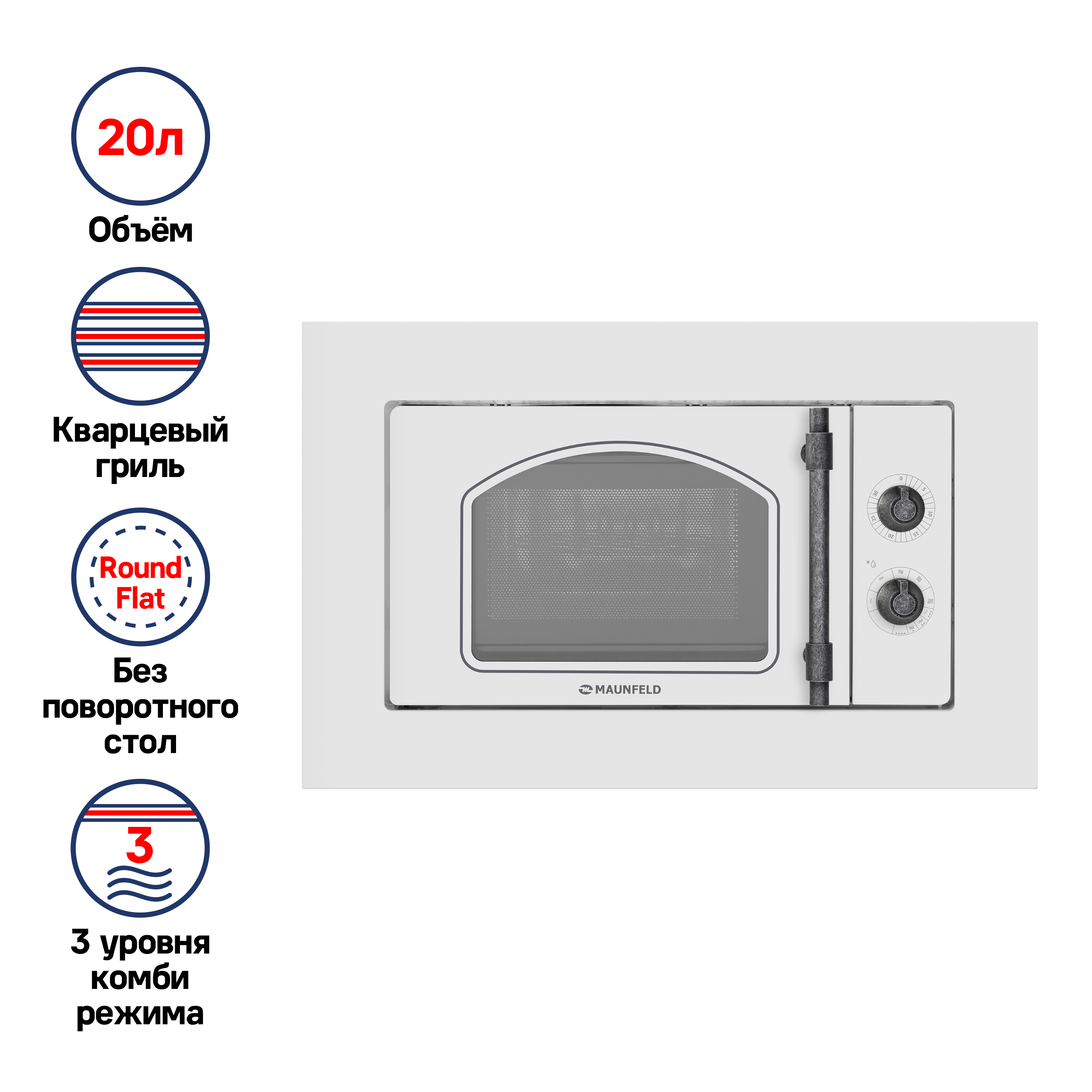 Больше пространства для приготовления. Микроволновые печи Maunfeld без поворотной тарелки имеют магнетрон TOSHIBA, расположенный снизу (технология Round Flat). Это обеспечивает равномерный прогрев и сокращает время приготовления на 13%.
