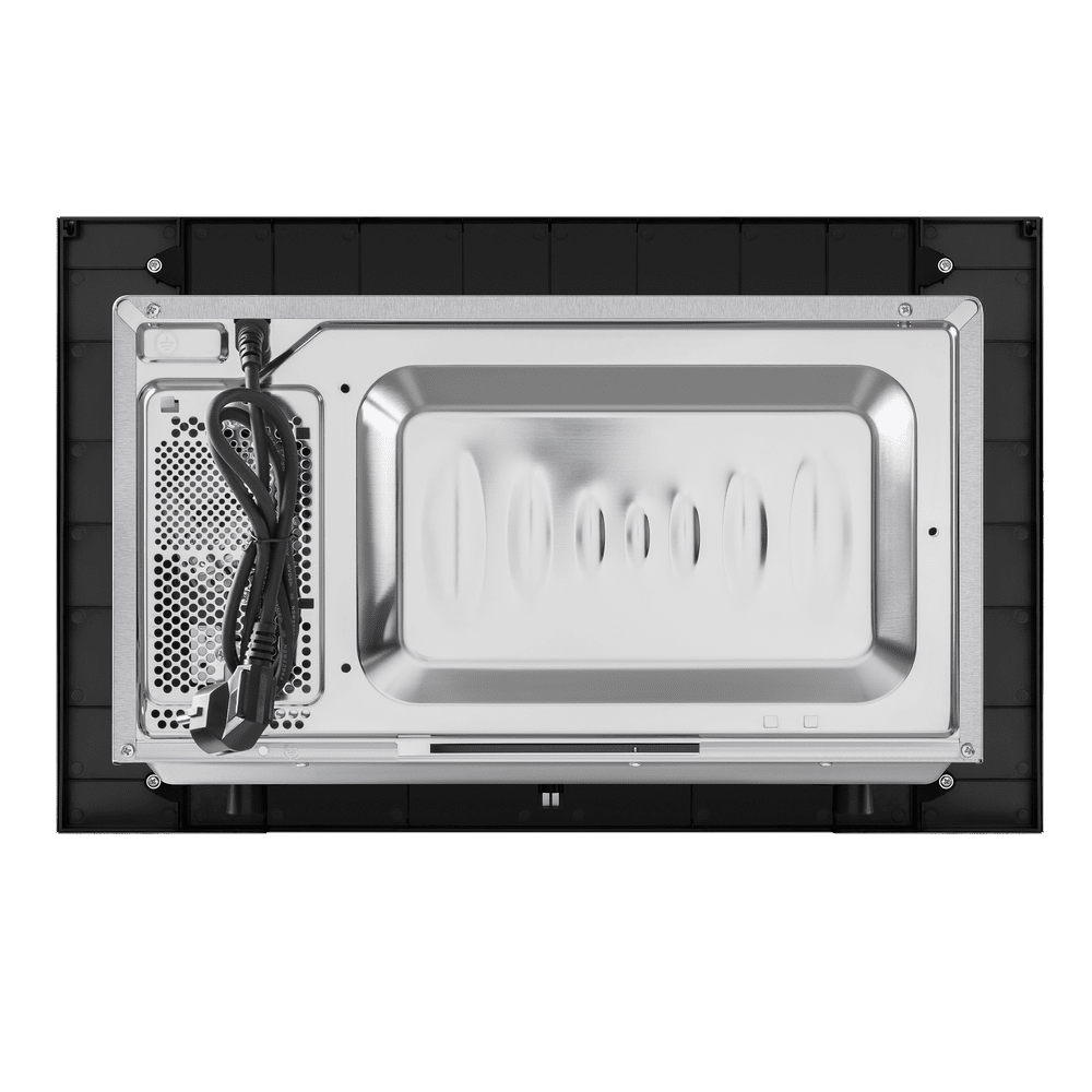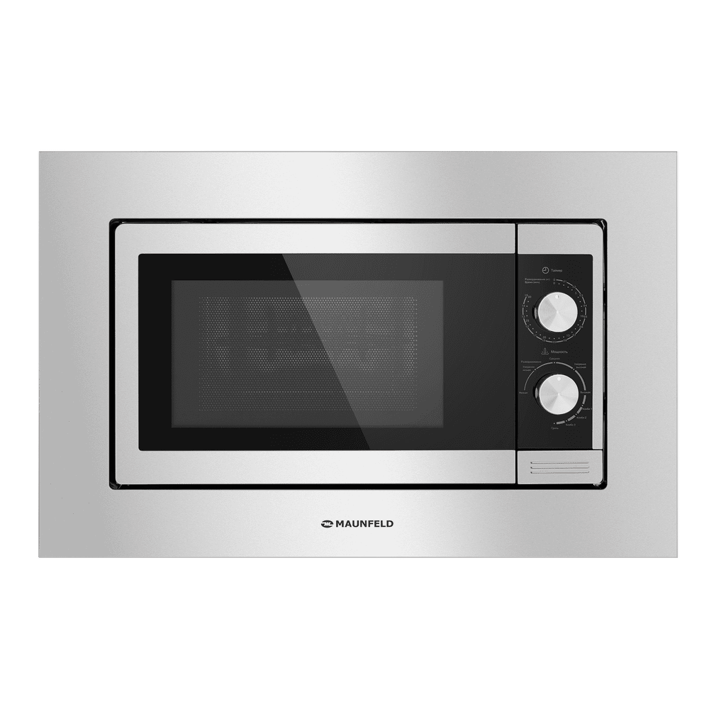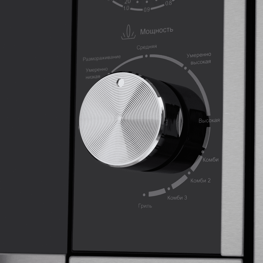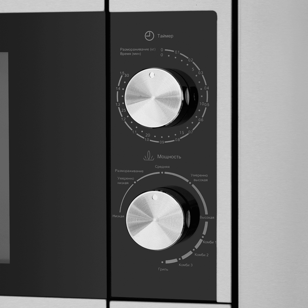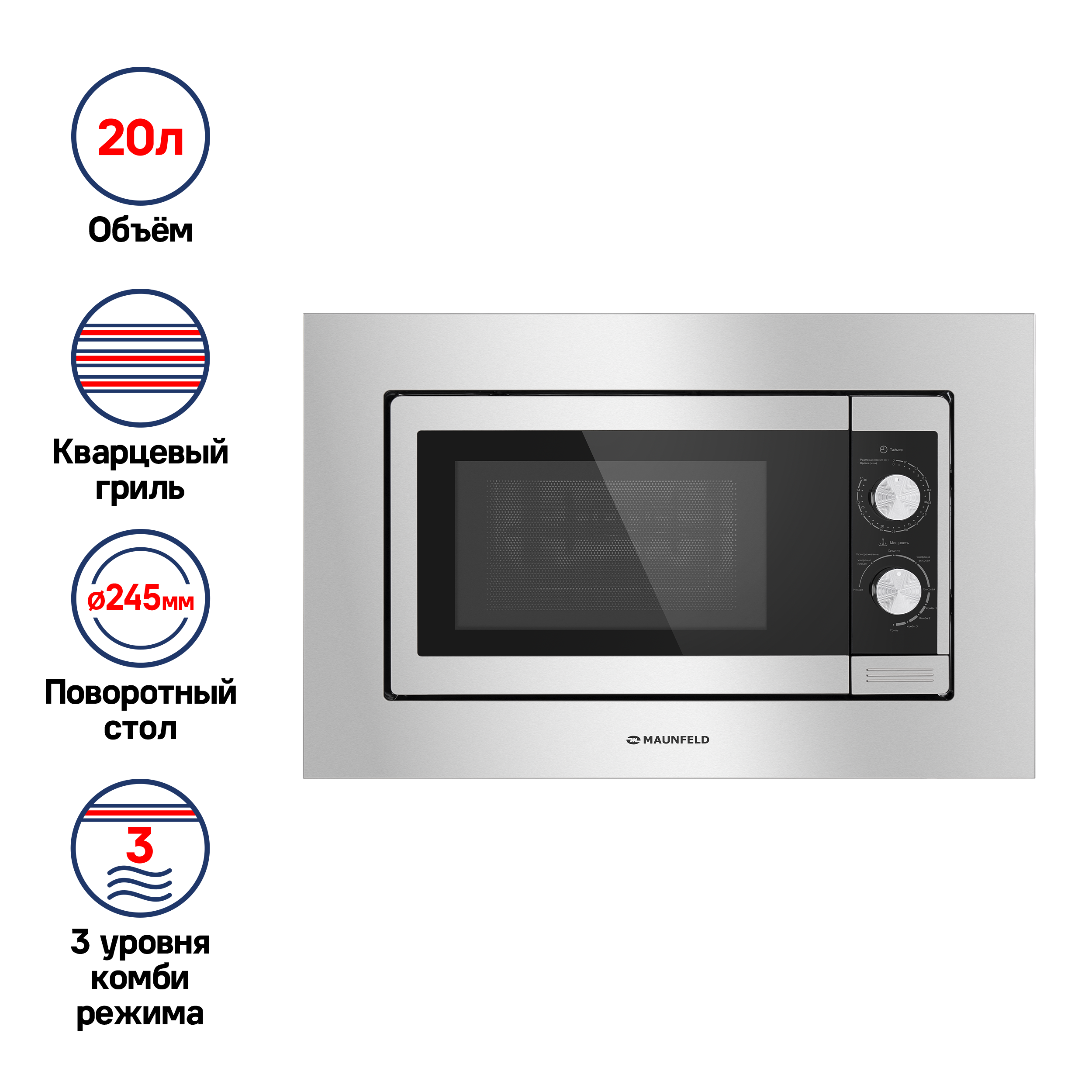 Встраиваемая микроволновая печь выполнена из полированного металла с черными вставками. Классическая ширина 60 см позволяет поместить ее в любой кухне.