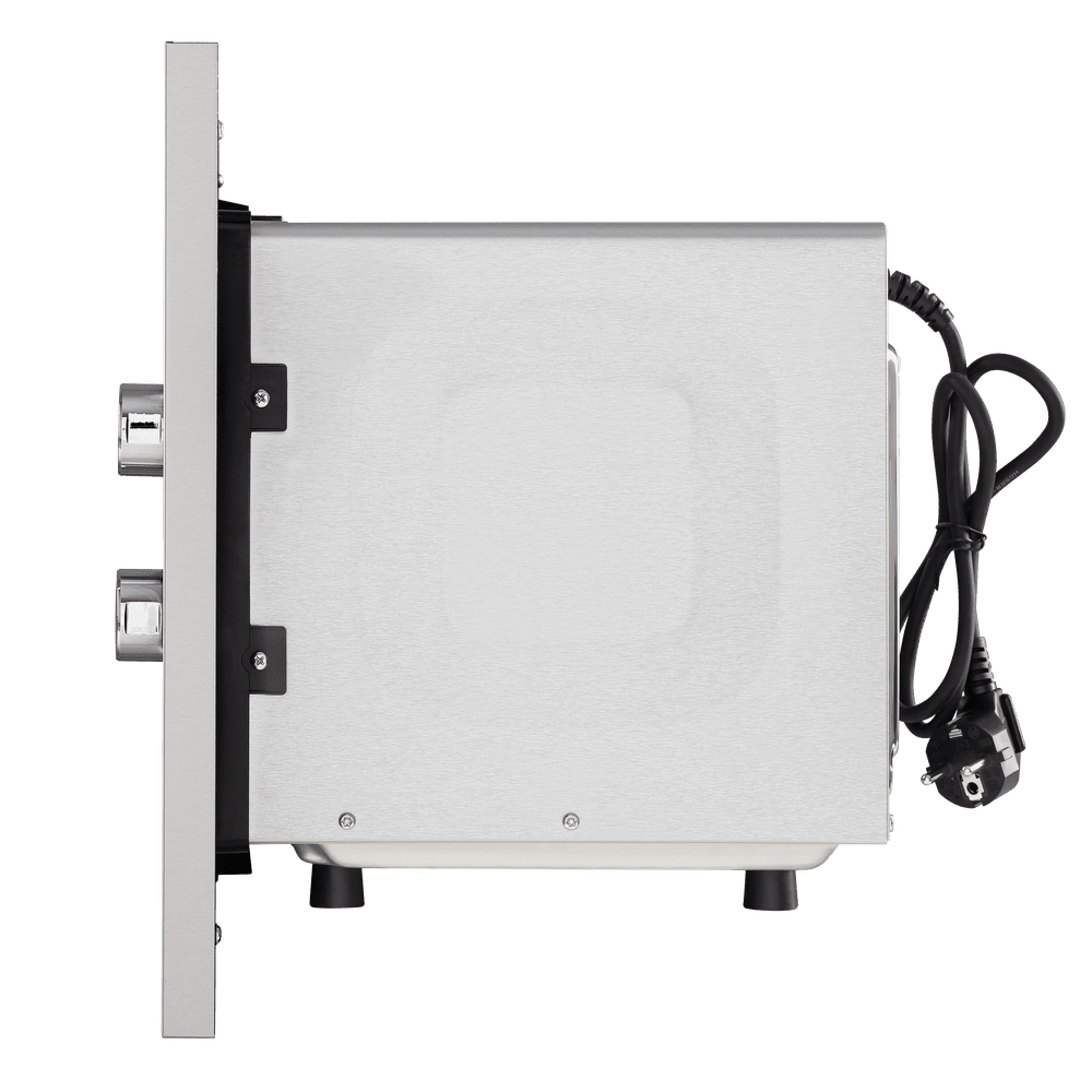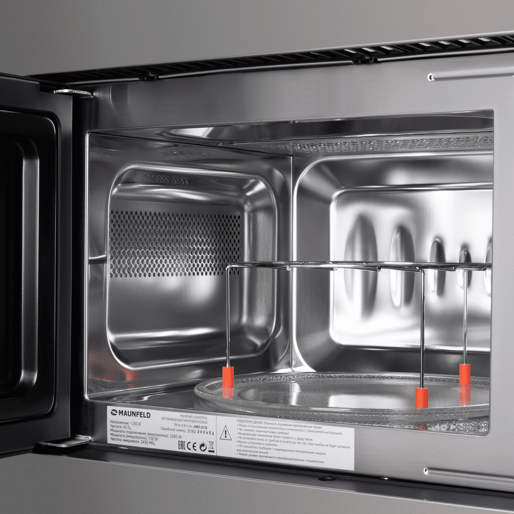 Внутренняя камера, сделанная из высококачественной нержавеющей стали толщиной 0,9 мм, имеет объем в 20 л. Внутри камеры установлен кварцевый гриль, вращающееся кольцо со стеклянным столиком и галогеновое освещение.
