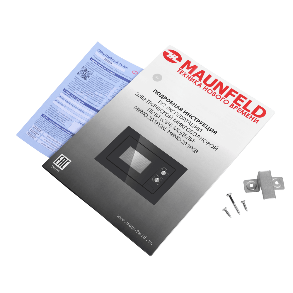 В комплекте к СВЧ идет вращающееся кольцо, стеклянный поддон и полный набор для установки (трафарет, зажим, болты, ориентир).