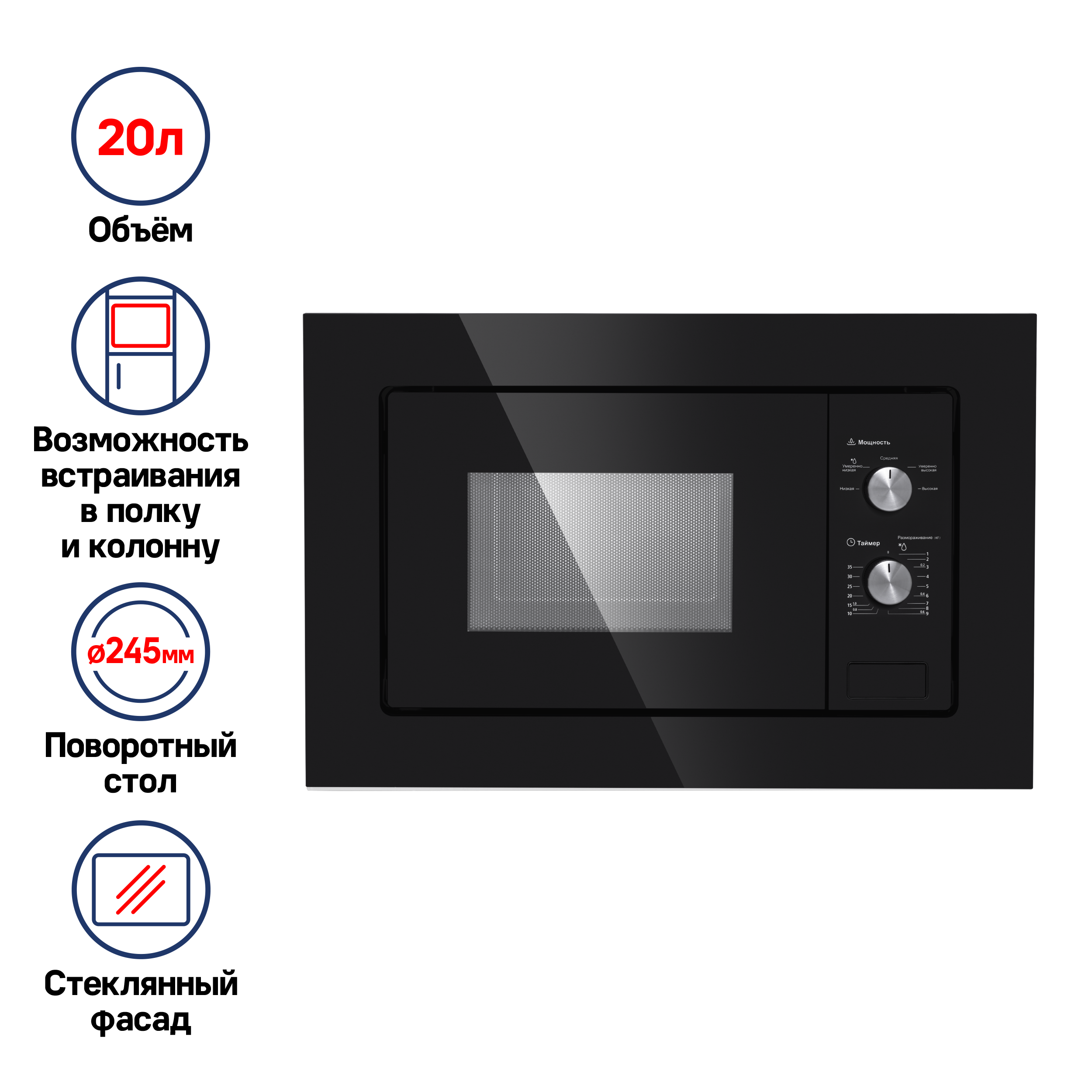 Встраиваемая микроволновая печь мощностью 1250 Вт выполнена из нержавеющей стали и оснащена высококачественным магнетроном производства Южной Кореи. Передняя панель матового черного цвета выполнена из стекла. Классическая ширина 60 см позволяет поместить ее в любой кухне.