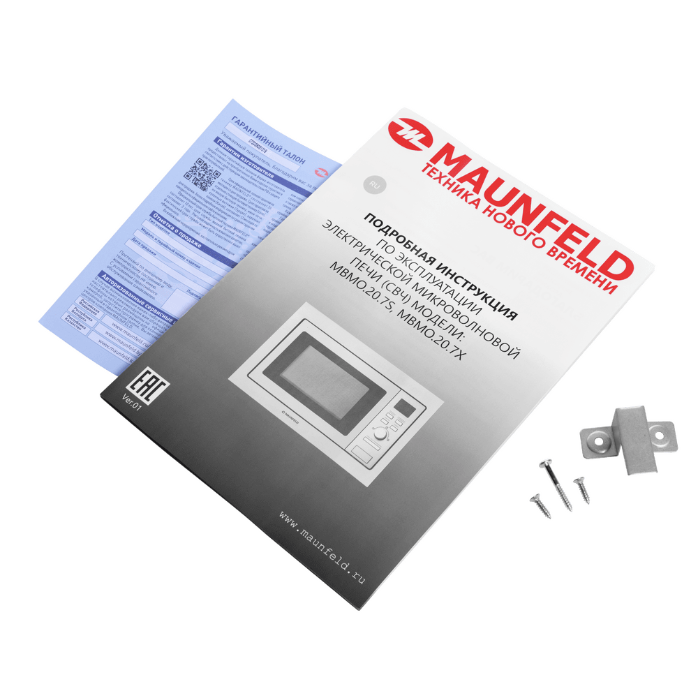 вращающееся кольцо, стеклянный поддон, решётка для гриля, инструкция на русском языке, комплект для установки