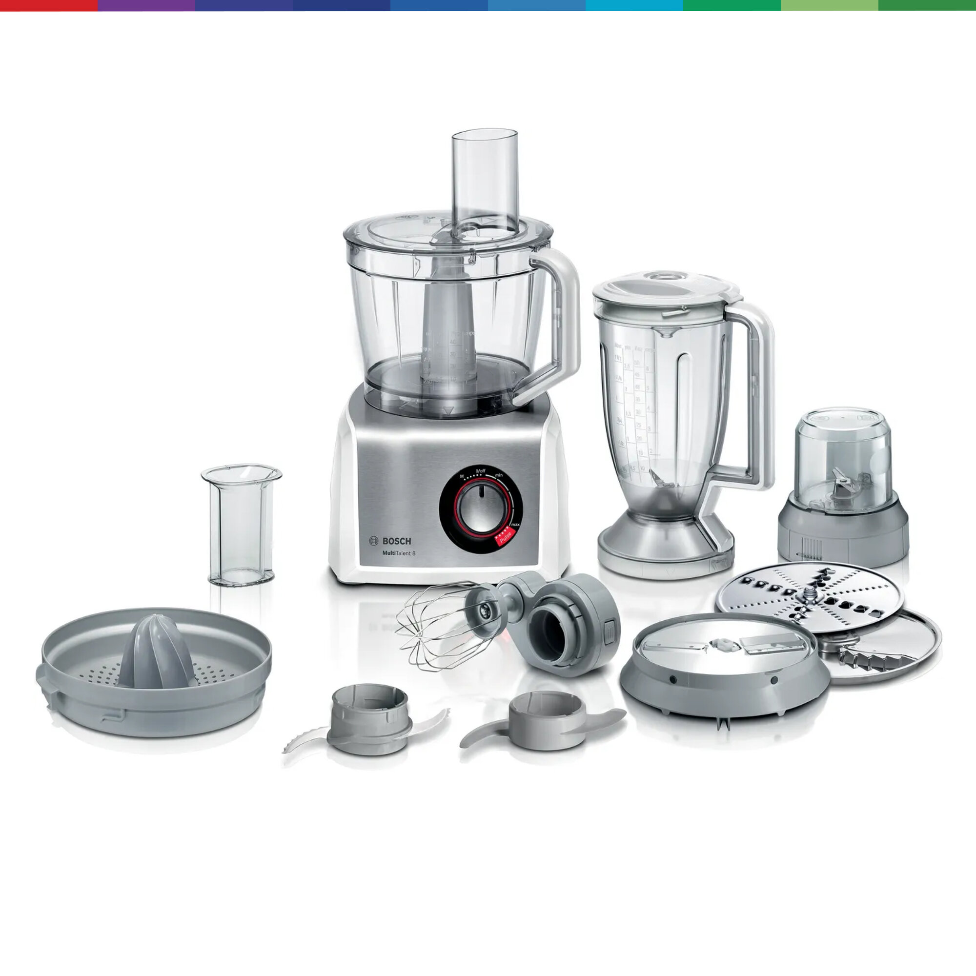 мельница, насадка-блендер, насадка-венчик, насадка-измельчитель, насадки для нарезки и шинковки (3 шт.), нож для теста, соковыжималка, толкатель, универсальный нож