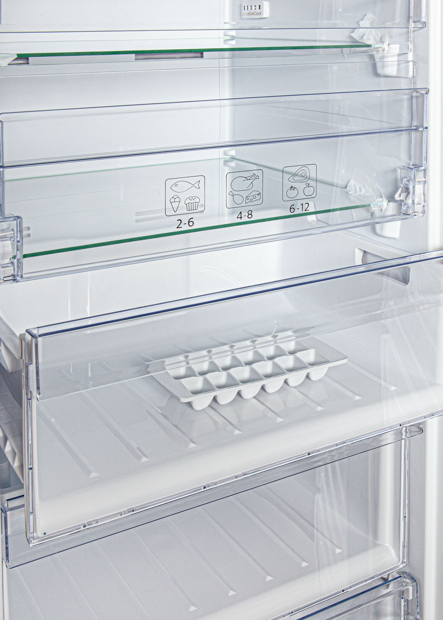 Cигнал открытой двери, 5 ящиков, 2 отделения с откидной крышкой, лоток для льда, лоток для пельменей.