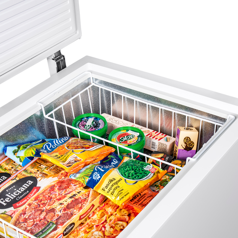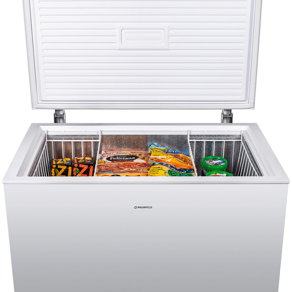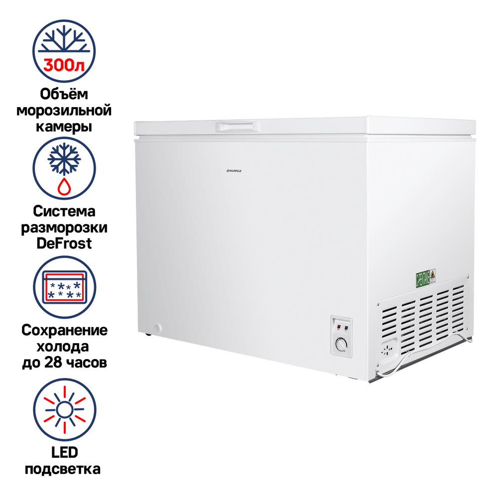 Отдельностоящий однокамерный морозильный ларь белого цвета имеет объем 300 л и сделан из металла. Он позволит увеличить срок хранения ваших замороженных продуктов до 4-х месяцев.