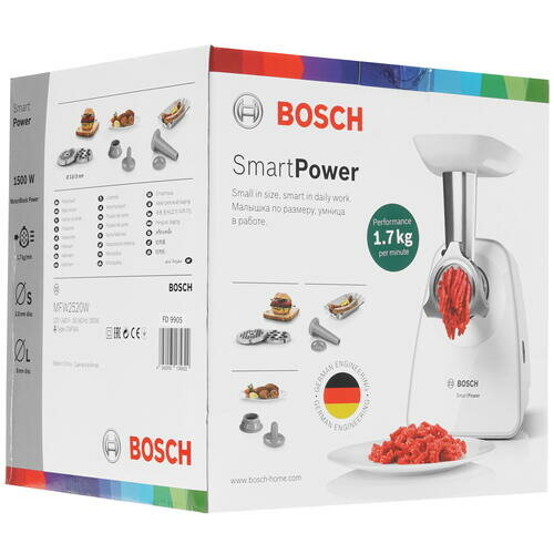 Мясорубка Bosch MFW2520W производительность: 1,7 кг/мин, 1500Вт
