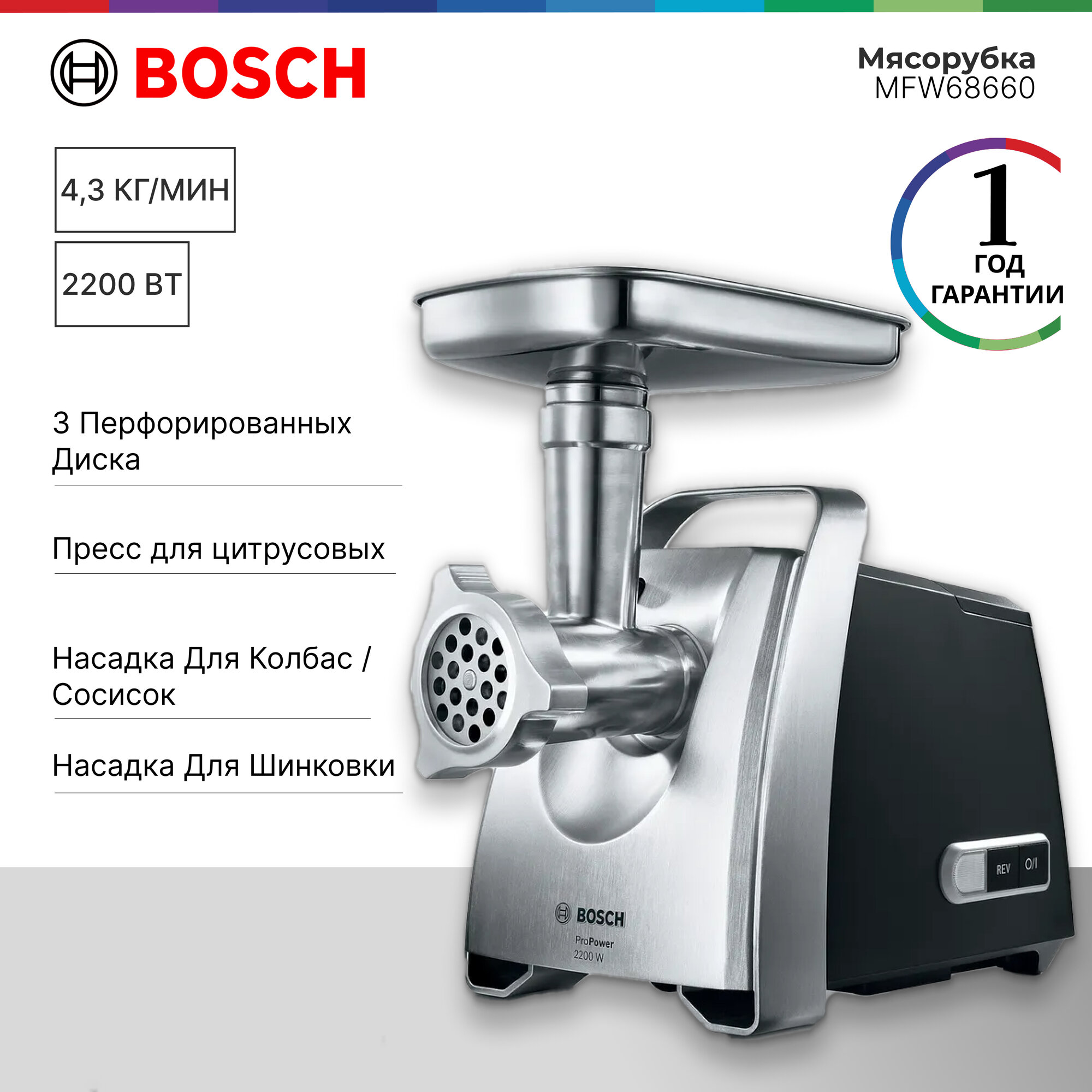 Страна производства: Китай. Товар новый в заводской упаковке. Мясорубка Bosch MFW68660 — это необходимое приобретение для любой семьи. Прибор обладает непревзойденным качеством исполнения. Инженеры компании Bosch позаботились от том, чтобы мясорубка отвечала всем техническим требованиям. Уникальный дизайн корпуса разработан с учетом того, чтобы модель могла органично вписаться практически в любой кухонный интерьер, став не просто бытовым прибором, а настоящим элементом декора.