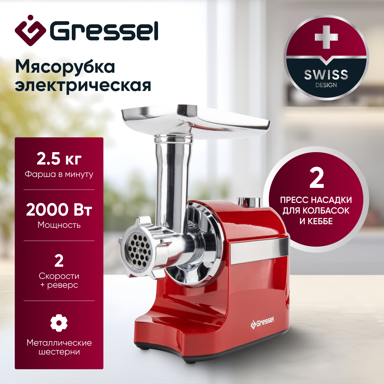 С мясорубкой Gressel каждый прием пищи может превратиться в праздник вкуса, благодаря качеству и универсальности приготовления мясных блюд.