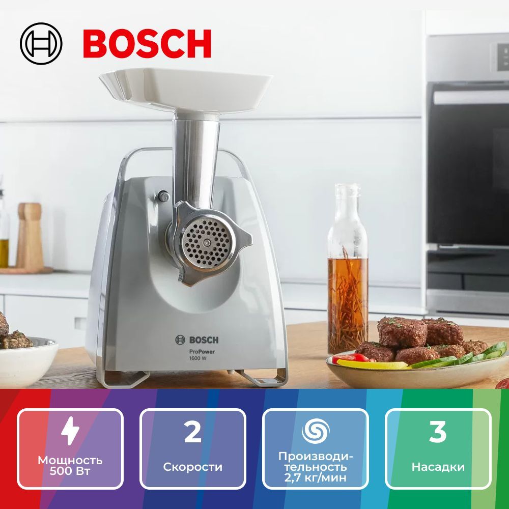 Мясорубка ProPower Bosch MFW45020, мощность 500 Вт, реверс, белая