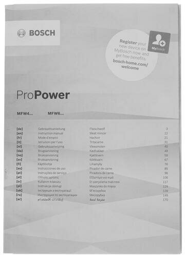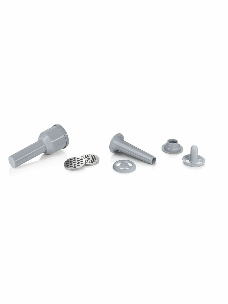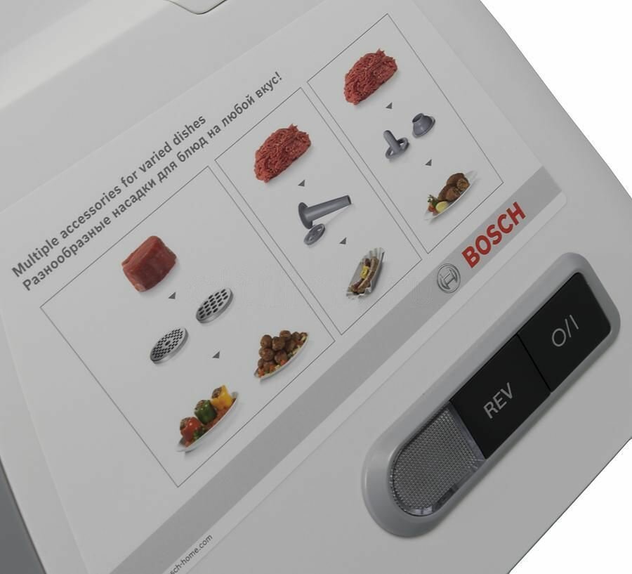Иногда нужно переработать большое количество мяса за короткое время. Мясорубка Bosch является экспертом в приготовлении мясного фарша. Благодаря мощному двигателю она работает очень быстро и надежно. Удаляет застрявшие волокна мяса одним нажатием кнопки. При переработке жесткого мяса и твердых продуктов мясорубка может забиться. Именно здесь вступает в действие функция реверс. Шнек прокручивается в обратном направлении и освобождает застрявший кусок мяса или жилы. Благодаря этой функции мясорубка очень быстро снова готова к использованию. Вкусная домашняя колбаса из свежих продуктов — устоять не возможно. Неоспоримое достоинство домашней колбасы в том, что она гораздо вкусней и полезней магазинной. Вы можете приготовить ее по индивидуальному рецепту из свинины, птицы или говядины. Порадуйте себя и ваших гостей ароматной закуской! Национальные мясные блюда с начинкой на ваш вкус. Вы можете приготовить аппетитные мясные колбаски с начинкой, даже если у вас не так много времени. Специальная насадка облегчает процесс приготовления, формируя полые колбаски из фарша. Вам останется наполнить их начинкой, защипнуть края и обжарить на сковороде или запечь в духовке. Перфорированные диски для получения фарша разной консистенции.Качество, которому вы можете доверять.