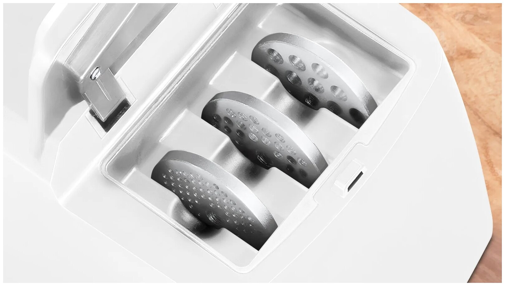 Удобная ручка для переноскиПрактичная ручка позволяет без труда перенести прибор. Вы можете переместить ее с места на место или быстро убрать со стола даже при помощи одной руки.