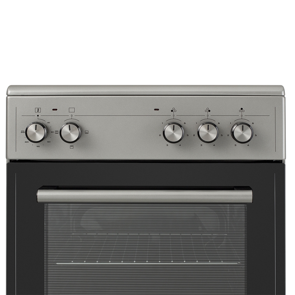 Электрическая плита Simfer F55VS03013 – простая в использовании и надёжная электрическая плита, которая предоставляет много возможностей для приготовления повседневной еды и праздничного угощения. Варочная поверхность изготовлена из стеклокерамики и имеет привлекательный внешний вид. Такая поверхность устойчива к высоким температурам и легко очищается. Она оборудована тремя конфорками, которые обеспечивают быстрый нагрев пищи, но при этом экономно расходуют электроэнергию. А индикаторы остаточного тепла показывают зоны, которые ещё не остыли. Эта модель оборудована духовым шкафом объёмом 45 л , дверца которого имеет 2 жаропрочных стекла. Несколько режимов духовки дадут вам возможность экспериментировать в приготовлении, выбирая оптимальные способы готовки для каждого блюда. Подсветка позволяет контролировать ход приготовления, не открывая лишний раз дверцу.