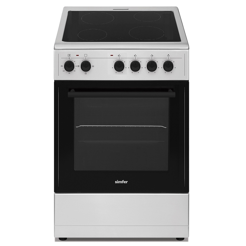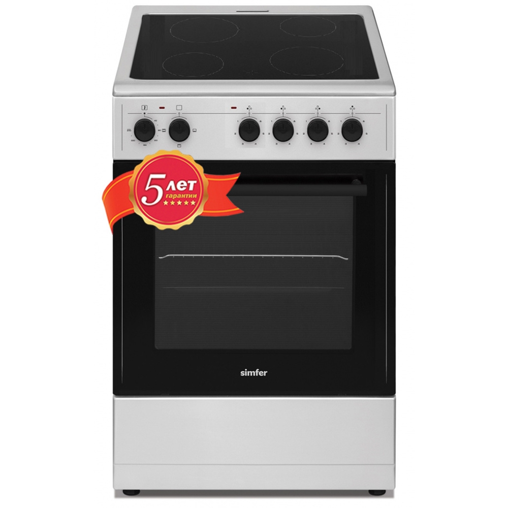 Электрическая плита Simfer F55VS04013 – простая в использовании и надёжная электрическая плита, которая предоставляет много возможностей для приготовления повседневной еды и праздничного угощения. Варочная поверхность изготовлена из стеклокерамики и имеет привлекательный внешний вид. Такая поверхность устойчива к высоким температурам и легко очищается. Она оборудована четырьмя конфорками, которые обеспечивают быстрый нагрев пищи, но при этом экономно расходуют электроэнергию. А индикаторы остаточного тепла показывают зоны, которые ещё не остыли. Эта модель оборудована духовым шкафом объёмом 45 л , дверца которого имеет 2 жаропрочных стекла. Несколько режимов духовки дадут вам возможность экспериментировать в приготовлении, выбирая оптимальные способы готовки для каждого блюда. Подсветка позволяет контролировать ход приготовления, не открывая лишний раз дверцу.