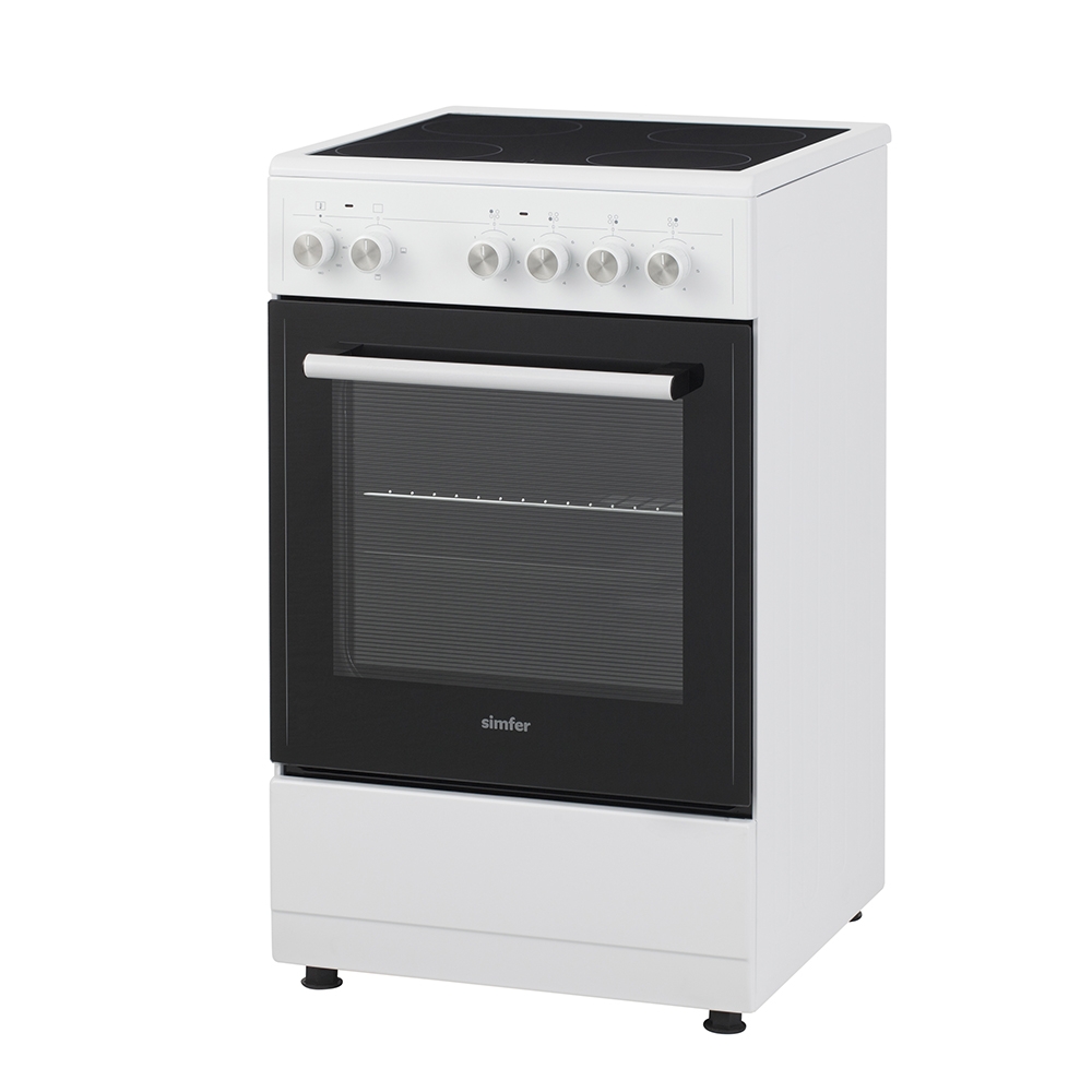 Электрическая плита Simfer F55VW04013 – простая в использовании и надёжная электрическая плита, которая предоставляет много возможностей для приготовления повседневной еды и праздничного угощения. Варочная поверхность изготовлена из стеклокерамики и имеет привлекательный внешний вид. Такая поверхность устойчива к высоким температурам и легко очищается. Она оборудована четырьмя конфорками, которые обеспечивают быстрый нагрев пищи, но при этом экономно расходуют электроэнергию. А индикаторы остаточного тепла показывают зоны, которые ещё не остыли. Эта модель оборудована духовым шкафом объёмом 45 л , дверца которого имеет 2 жаропрочных стекла. Несколько режимов духовки дадут вам возможность экспериментировать в приготовлении, выбирая оптимальные способы готовки для каждого блюда. Подсветка позволяет контролировать ход приготовления, не открывая лишний раз дверцу.