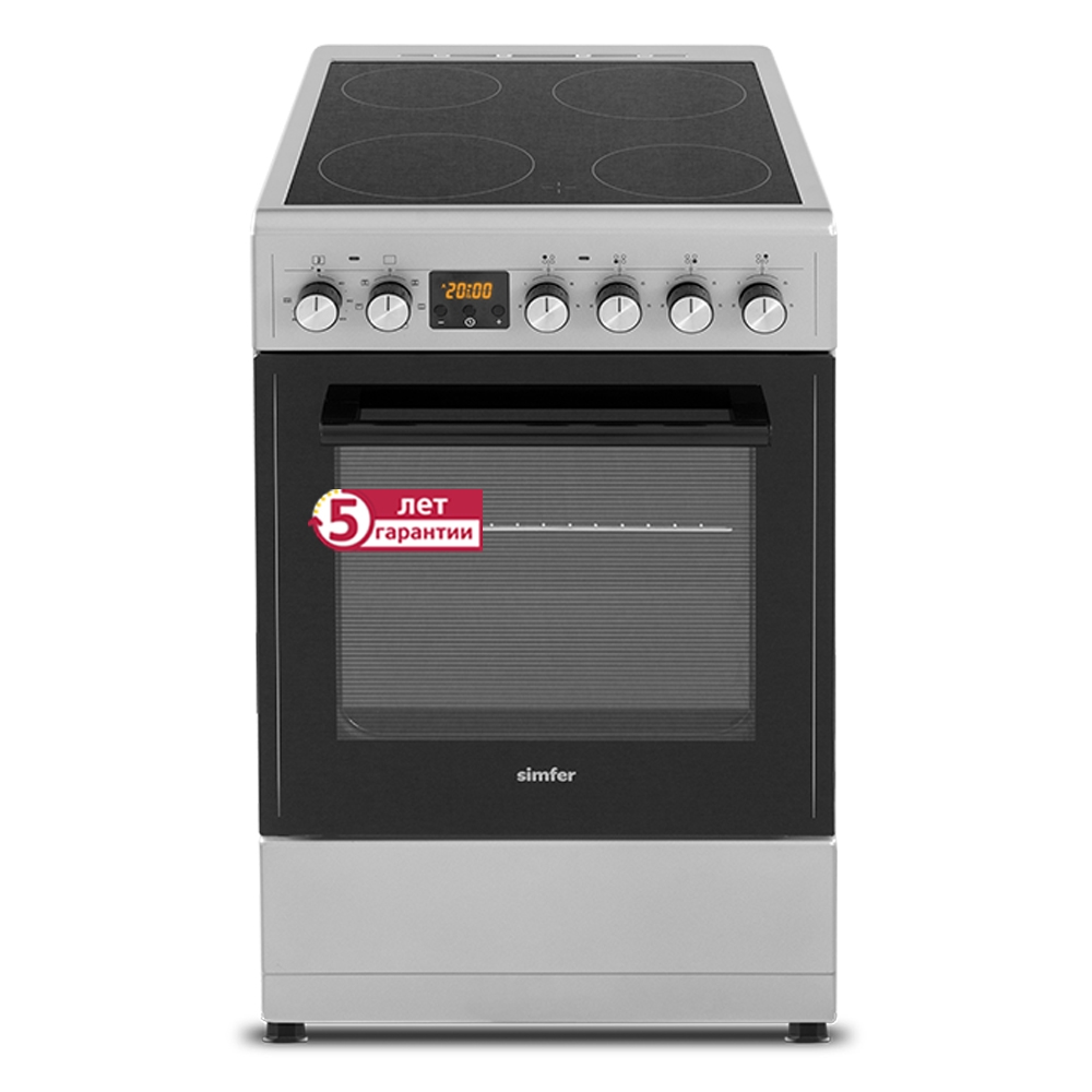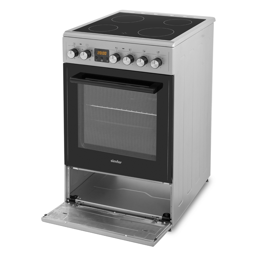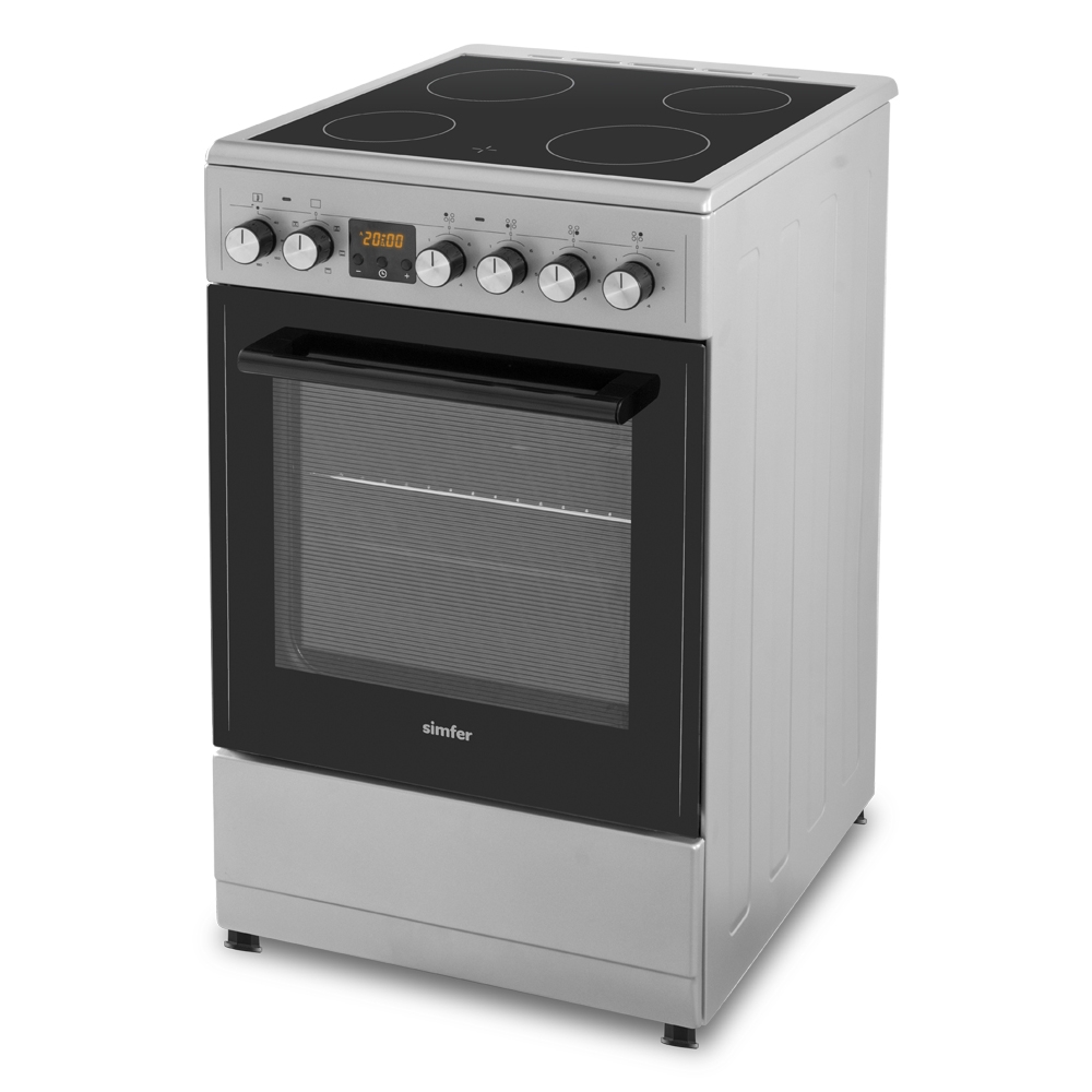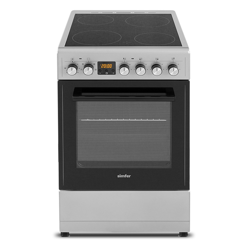 Электрическая плита Simfer F56VS07135 – простая в использовании и надёжная электрическая плита, которая предоставляет много возможностей для приготовления повседневной еды и праздничного угощения. Варочная поверхность изготовлена из стеклокерамики и имеет привлекательный внешний вид. Такая поверхность устойчива к высоким температурам и легко очищается. Она оборудована четырьмя конфорками, которые обеспечивают быстрый нагрев пищи, но при этом экономно расходуют электроэнергию. Эта модель оборудована духовым шкафом объёмом 54 л , дверца которого имеет 2 жаропрочных стекла. Несколько режимов духовки дадут вам возможность экспериментировать в приготовлении, выбирая оптимальные способы готовки для каждого блюда. Подсветка позволяет контролировать ход приготовления, не открывая лишний раз дверцу.