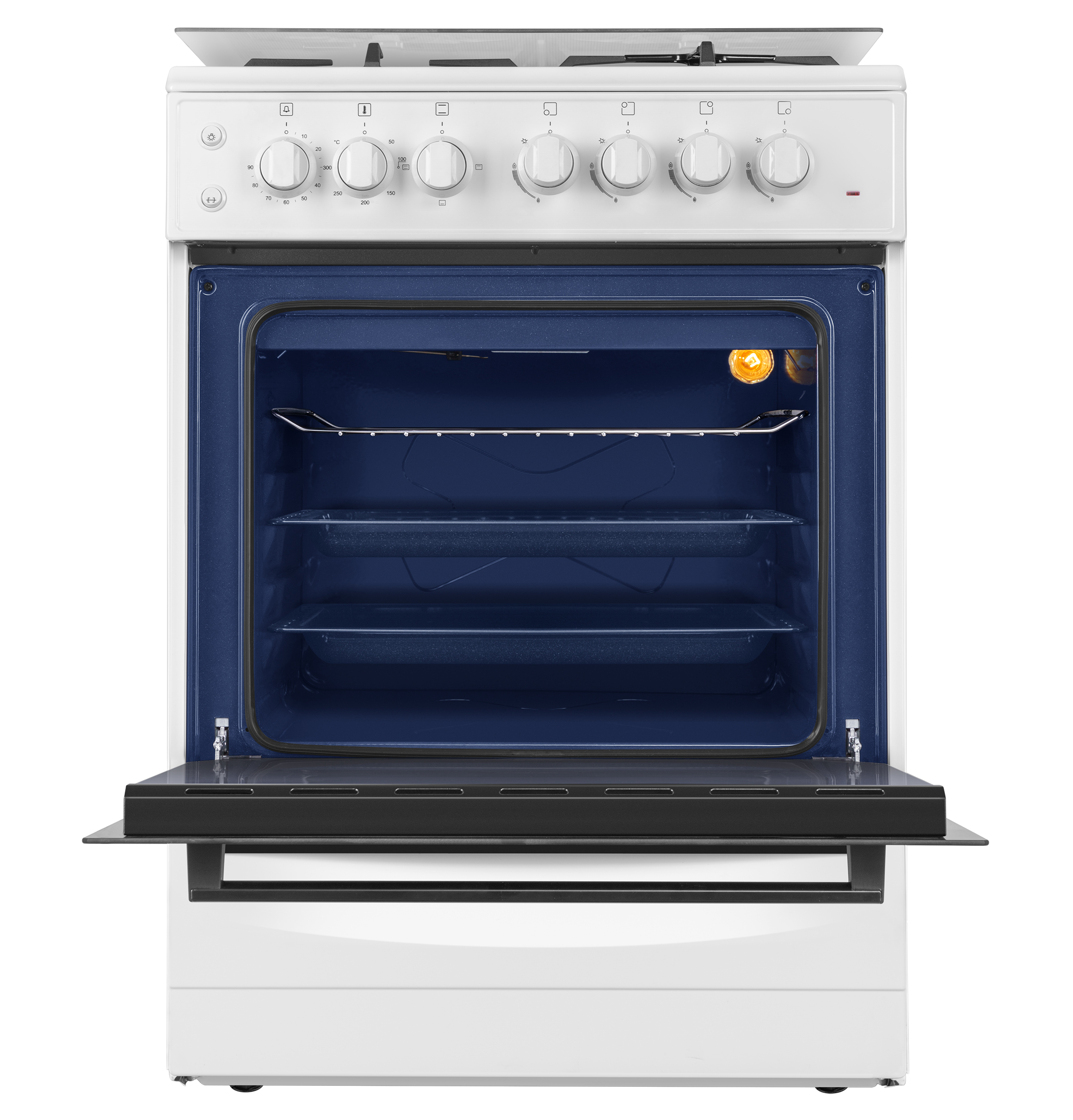 Стандартный противень-2 шт., никелированная решетка духовки-1 шт, вертел, подставка под кофеварку, подставка для вертела, жиклеры