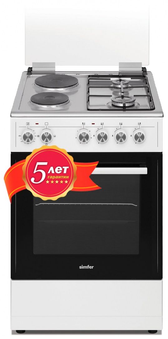 Комбинированная плита Simfer F55MW23000 - даёт возможность владельцу выбирать и использовать любой тип энергии. Модель оснащена двумя газовыми, двумя электрическими конфорками и электрическим духовым шкафом объёмом 45 литров. Предусмотренный в модели электроподжиг дает возможность зажигать пламя быстро и безопасно без применения спичек или зажигалок. Несколько режимов духовки дадут вам возможность экспериментировать в приготовлении, выбирая оптимальные способы готовки для каждого блюда. Благодаря петлям происходит плавное и бесшумное закрытие дверцы духовки при толчке любой силы. Подсветка позволяет контролировать ход приготовления, не открывая лишний раз дверцу.