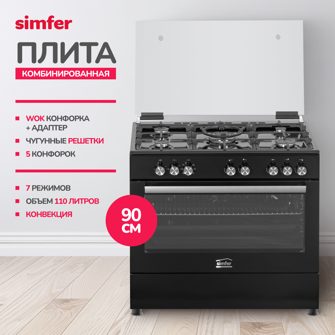 Комбинированная плита Simfer F96MB52001 — это сочетание сразу двух источников энергии, а значит и разных способов приготовления пищи. Модель оборудована пятью газовыми конфорками и электрическим духовым шкафом. Предусмотренный в модели электроподжиг дает возможность зажигать пламя быстро и безопасно без применения спичек или зажигалок. Несколько режимов духовки дадут вам возможность экспериментировать в приготовлении, выбирая оптимальные способы готовки для каждого блюда. Благодаря петлям происходит плавное и бесшумное закрытие дверцы духовки при толчке любой силы. Подсветка позволяет контролировать ход приготовления, не открывая лишний раз дверцу.