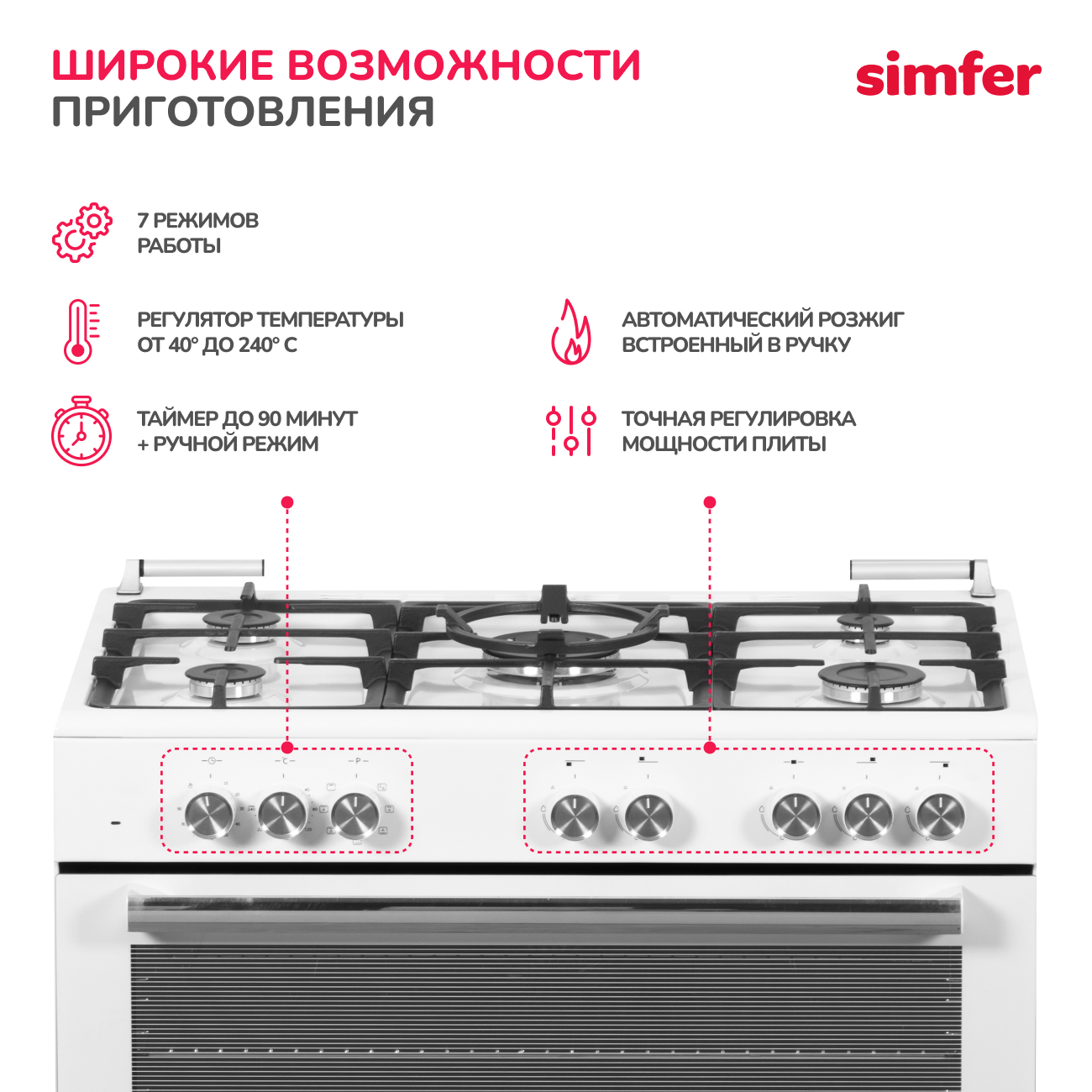 Комбинированная плита Simfer F96MW52001 — это сочетание сразу двух источников энергии, а значит и разных способов приготовления пищи. Модель оборудована пятью газовыми конфорками и электрическим духовым шкафом. Предусмотренный в модели электроподжиг дает возможность зажигать пламя быстро и безопасно без применения спичек или зажигалок. Несколько режимов духовки дадут вам возможность экспериментировать в приготовлении, выбирая оптимальные способы готовки для каждого блюда. Благодаря петлям происходит плавное и бесшумное закрытие дверцы духовки при толчке любой силы. Подсветка позволяет контролировать ход приготовления, не открывая лишний раз дверцу.
