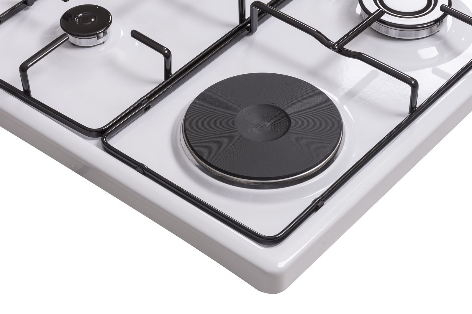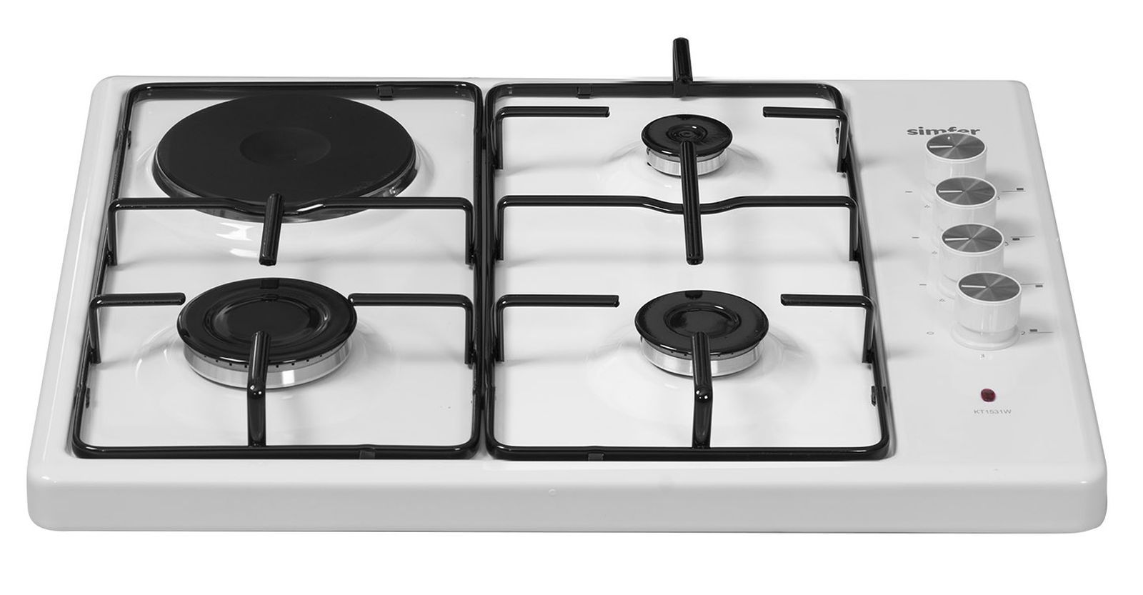 Настольная комби плита Simfer KT1531W - полноценная варочная панель компактного размера, которая подойдет для небольшой квартиры или загородного участка даже без подведенного газопровода. Плита оснащена тремя газовыми и одной электрической конфорками и может работать от различных источников питания: газовой подводки, газового баллона или электрического кабеля, что дает обширные возможности для всех хозяек, которые любят много готовить. Поверхность плиты изготовлена из эмалированной стали легкой очистки, которая неприхотлива в уходе. Управление осуществляется поворотными переключателями, позволяющими легко настроить нужную температуру. Настольная плита Simfer идеальный вариант для маленькой кухни или дачного домика.
