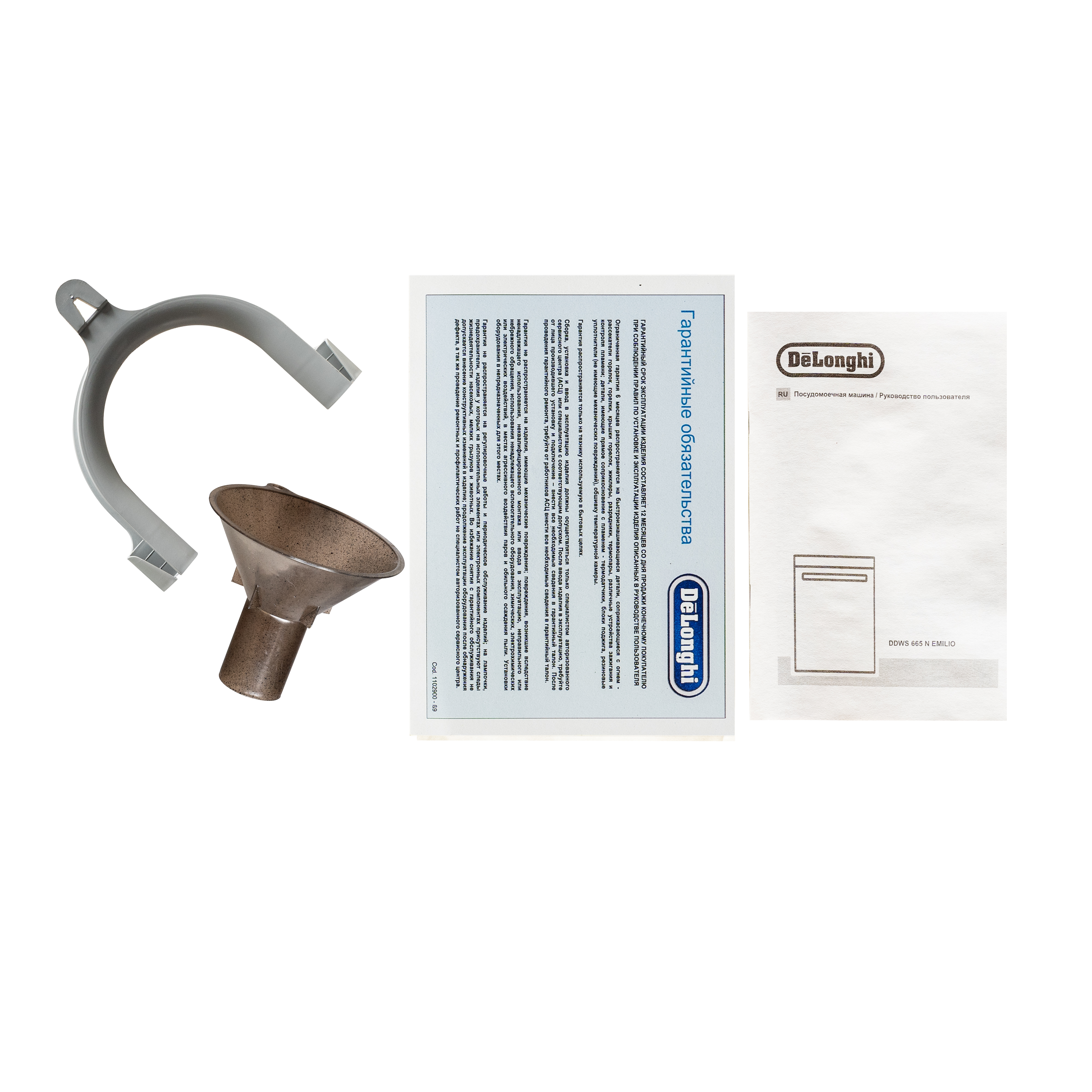 Сливной шланг, Заливной шланг, Пластиковый держатель для сливного шланга, Воронка для засыпки соли, Руководство по эксплуатации, Гарантийный талон