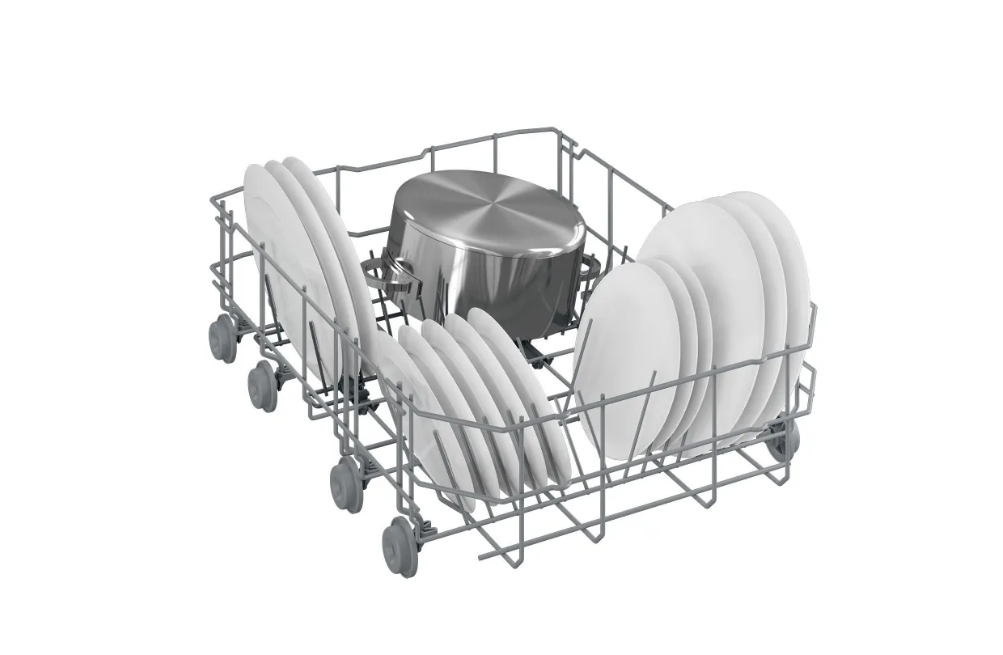 Третья корзина добавляет удобства в размещении столовых приборов и мелких предметов. Уровень шума в 55 дБ делает её достаточно тихой для использования в любое время дня. Функция "Гигиена" обеспечивает дополнительную чистоту, что особенно важно для семей с детьми.
