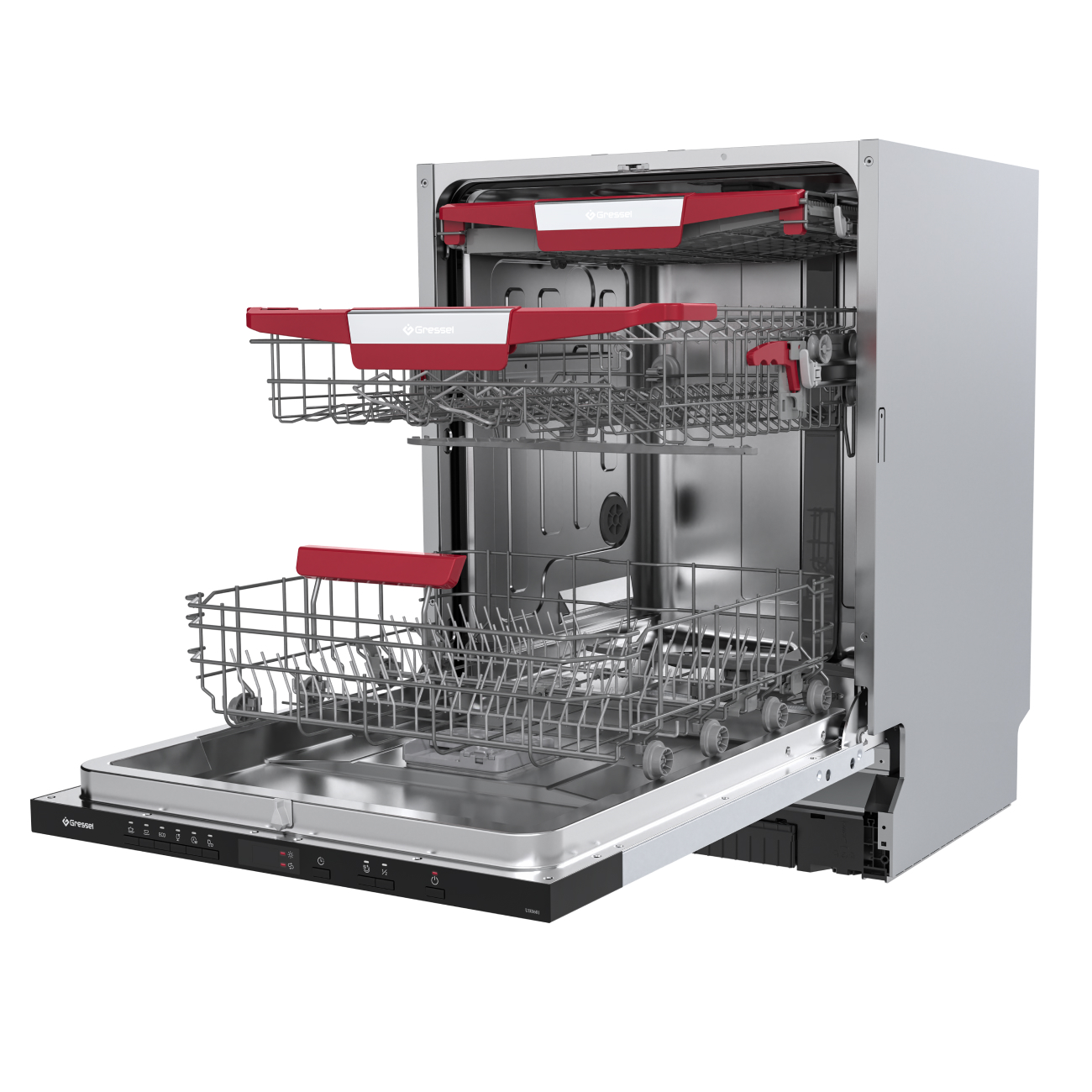 Внутри предусмотрены 3 уровня загрузки, включающие стойку для приборов или лоток, а перестраиваемые корзины упрощают размещение крупногабаритных тарелок и казанов. Несмотря на вместительность, машина работает достаточно тихо и незаметно, вписываясь в интерьер за счёт полностью встраиваемого корпуса с черной панелью. Если вы цените вместимость, функциональность и экономию ресурсов, Gressel UBB601 станет отличным выбором.