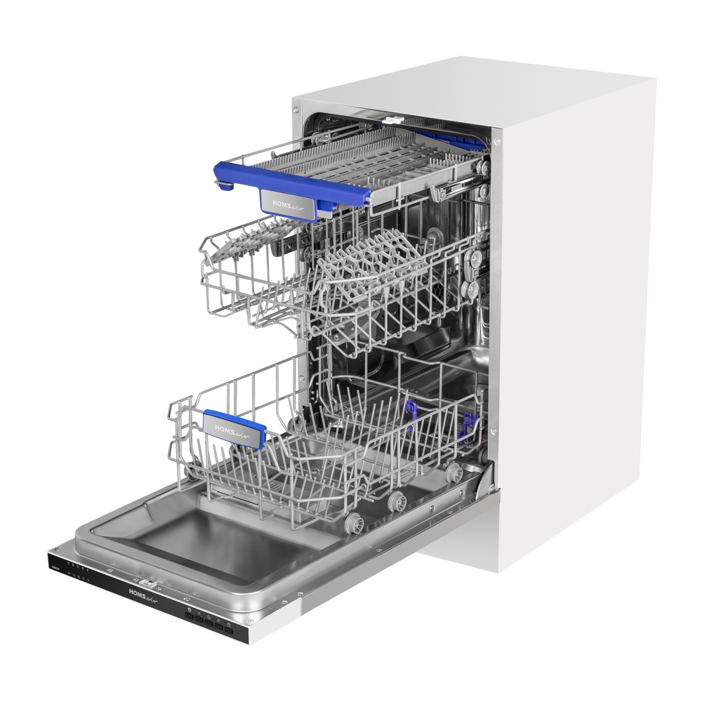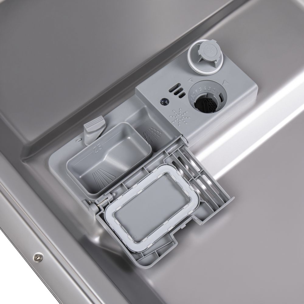 Турбосушка. Индикация окончания мойки "Луч на полу". Защита от протечек. Полновстраиваемая. Выдвижной лоток для столовых приборов. Возможность использования моющих средств "3в1". Отсрочка старта от 1 до 24 часов и интервалом в один час.