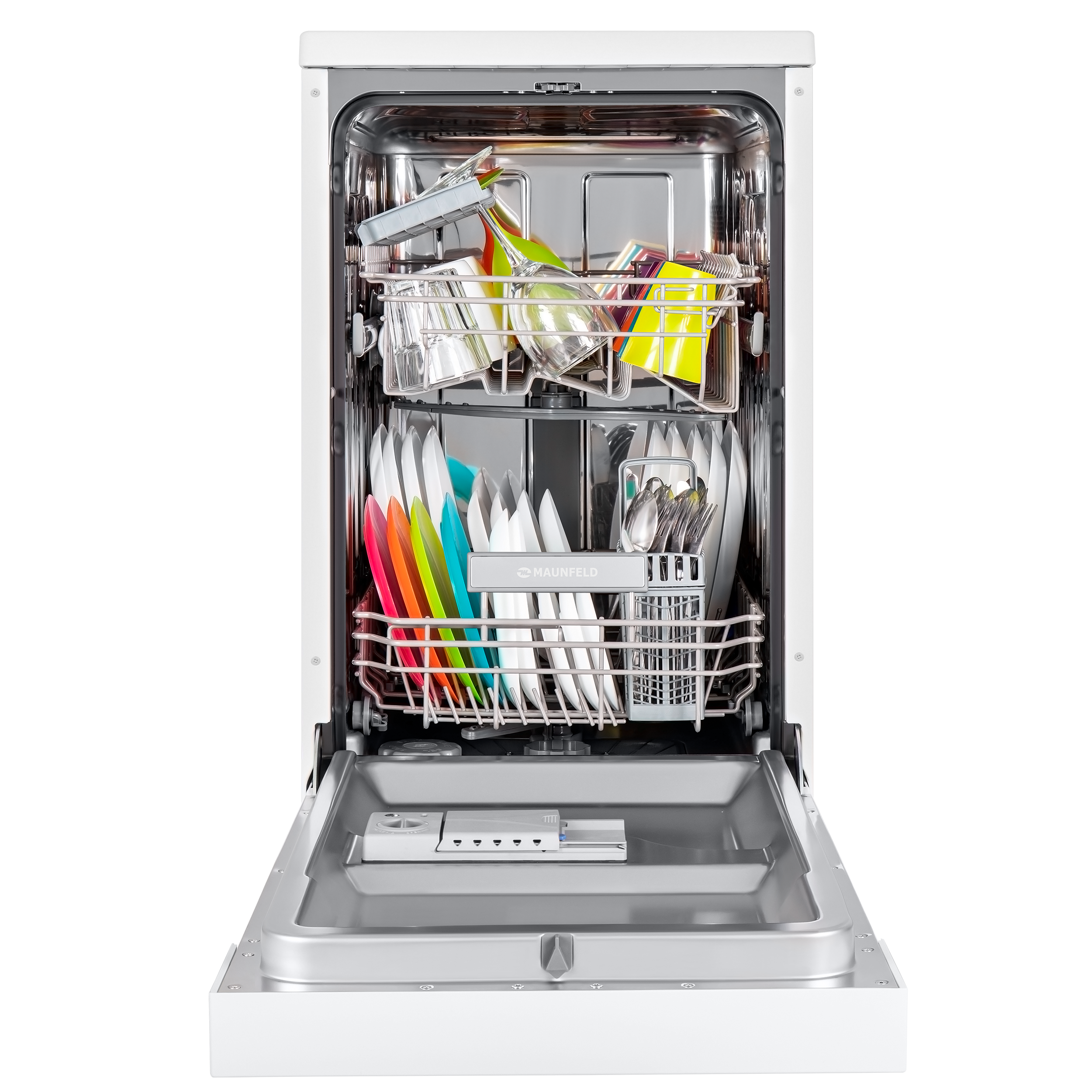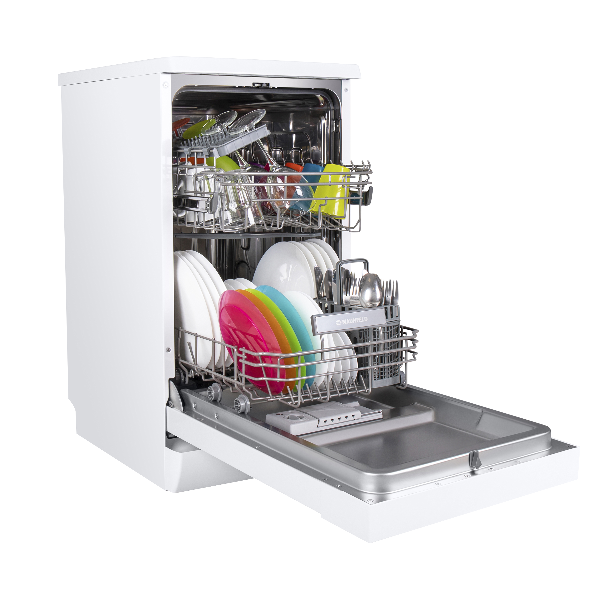 Узкая отдельностоящая посудомоечная машина шириной 45 см. Благодаря использованию специально эргономичных корзин позволяет вымыть 9 комплектов посуды. Внутренняя поверхность выполнена из нержавеющей стали толщиной 0.6-0.8 мм, что обеспечит долгий срок службы при активном использовании.