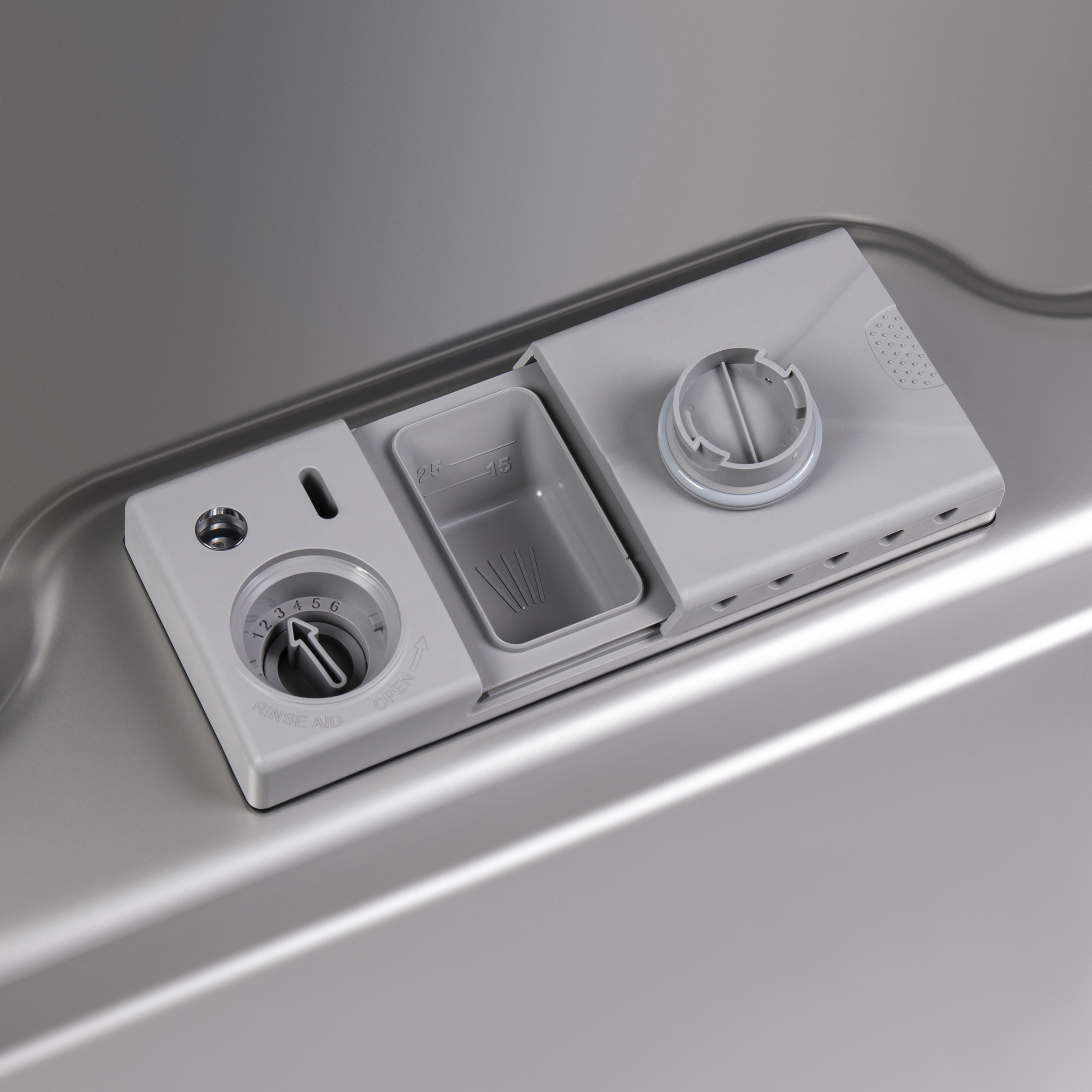 Запатентованная конструкция фильтра для крупных частичек пищи позволяет избежать засоров. Отсек для загрузки соли