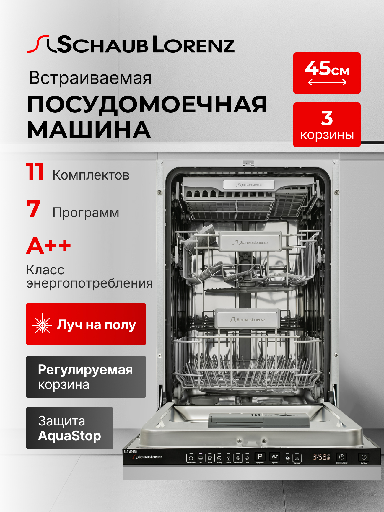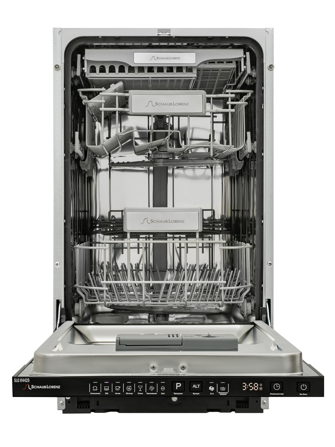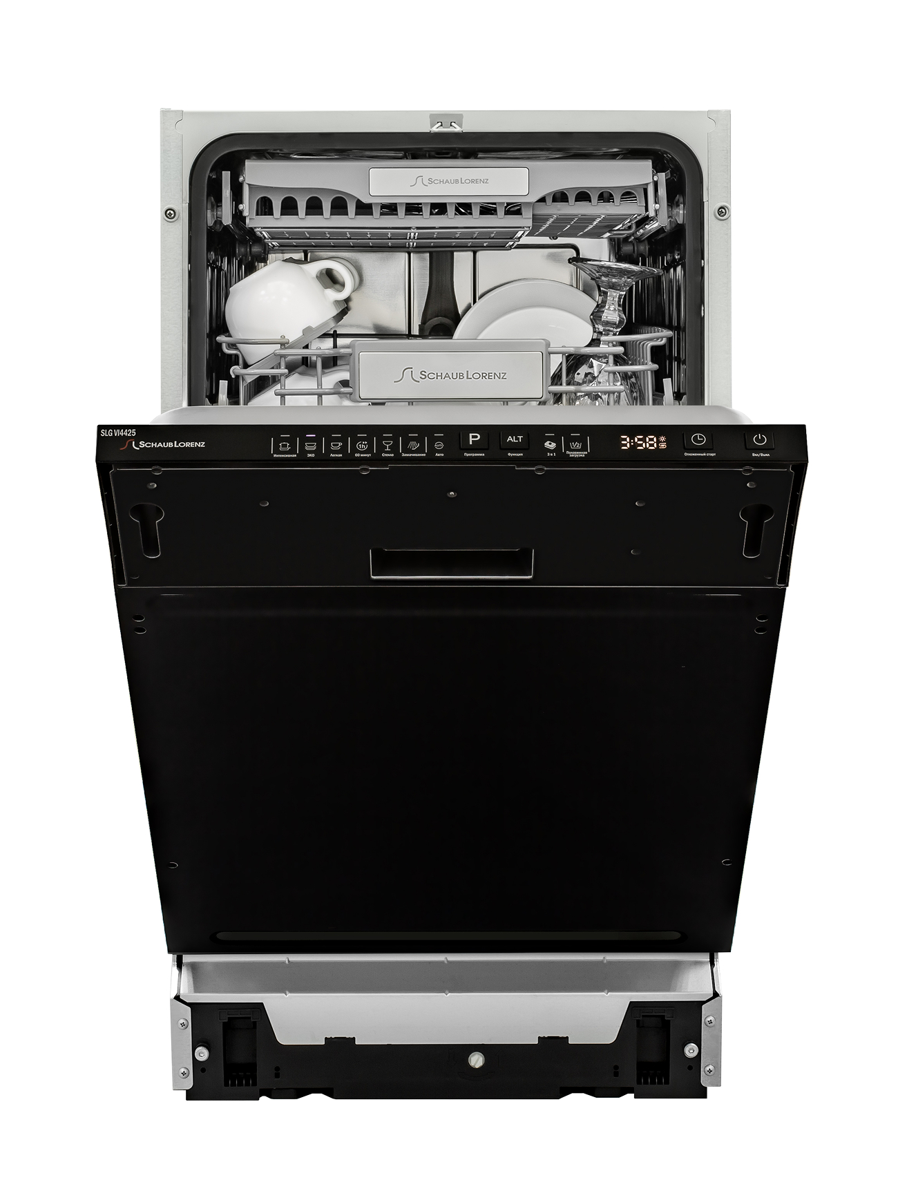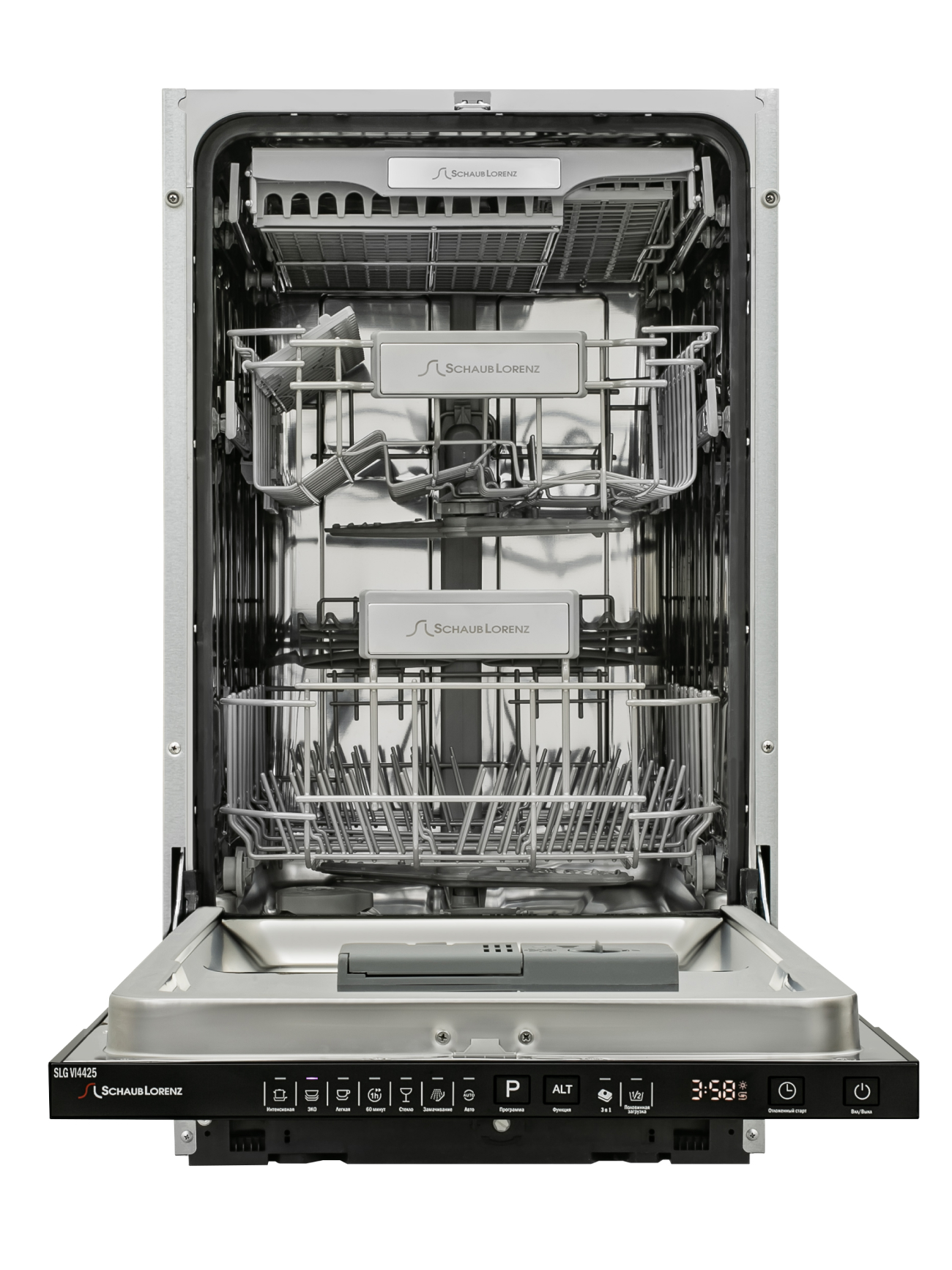 Лоток для столовых приборов, Сливной шланг, Пластиковый держатель для сливного шланга, Воронка для засыпки соли, Руководство по эксплуатации, Гарантийный талон