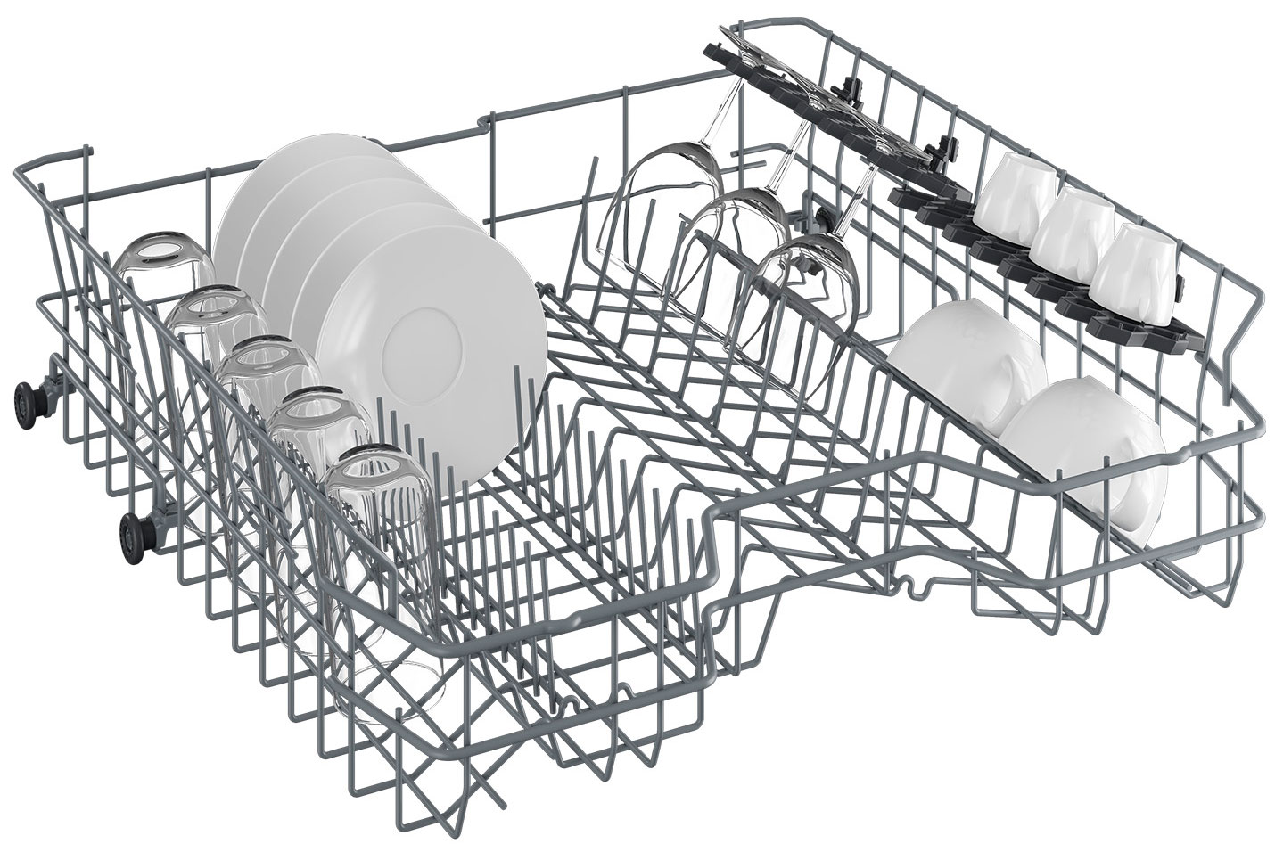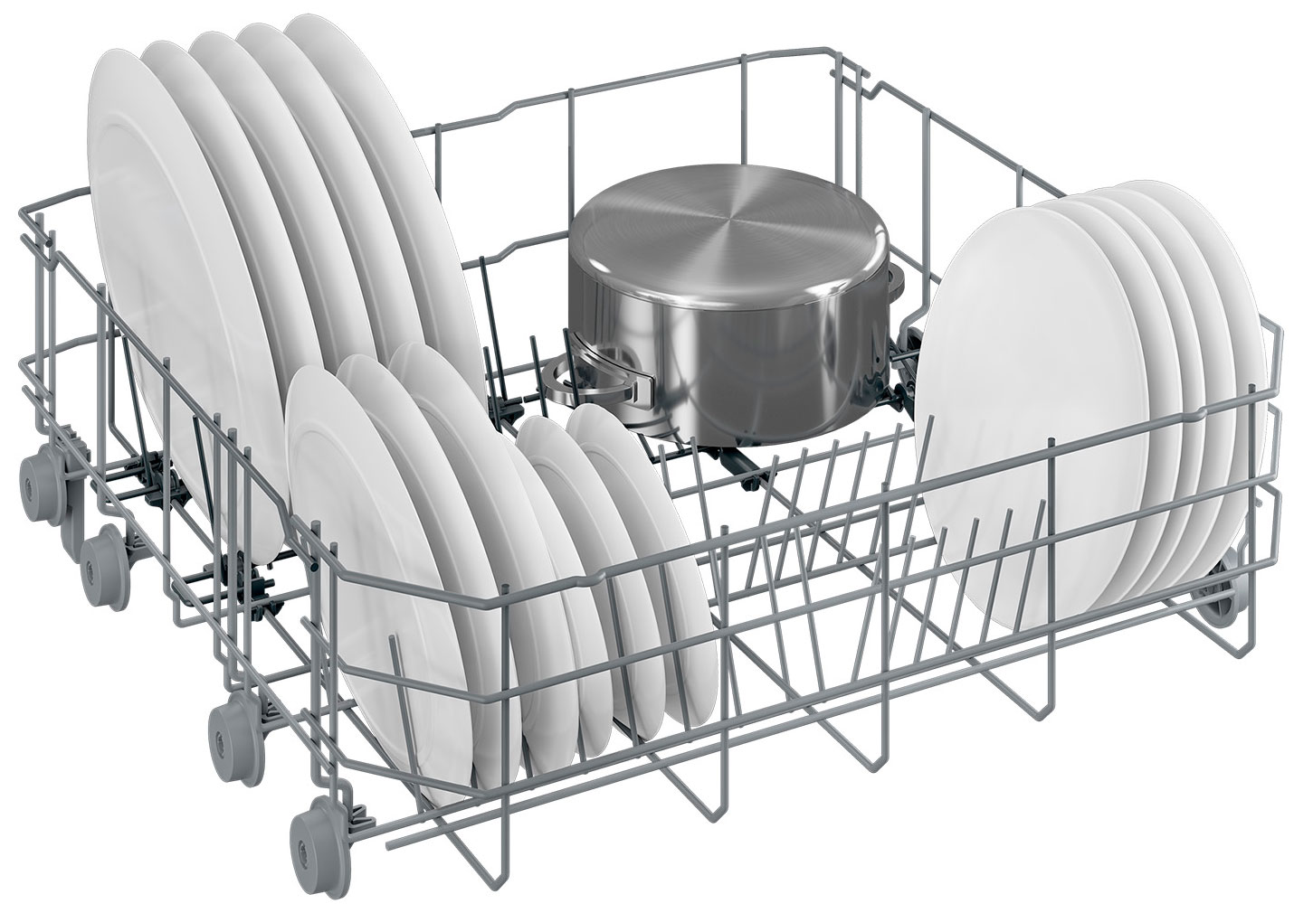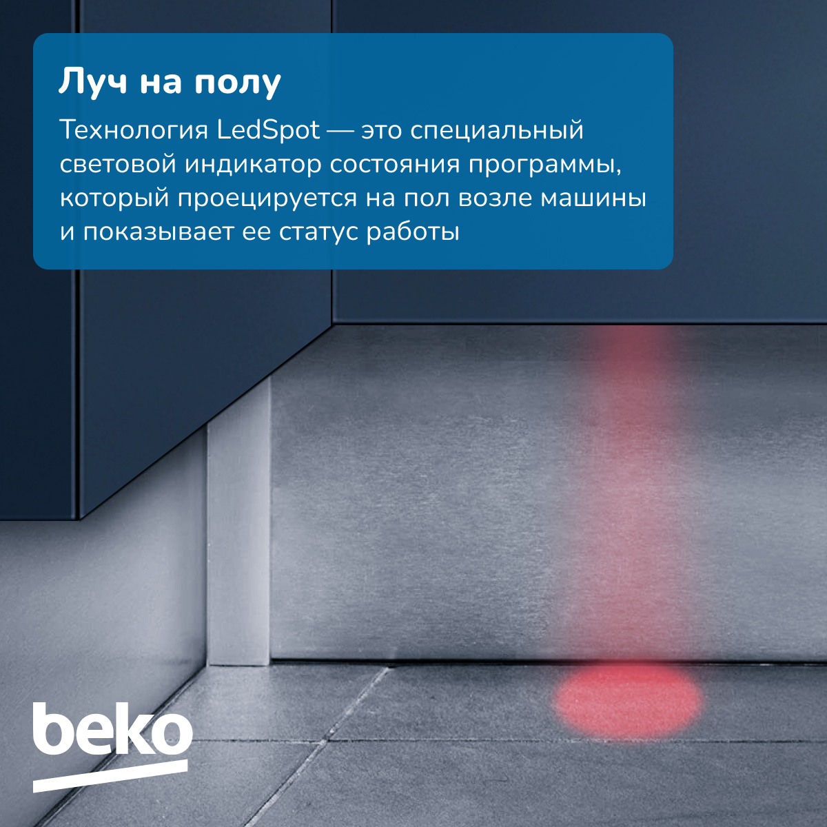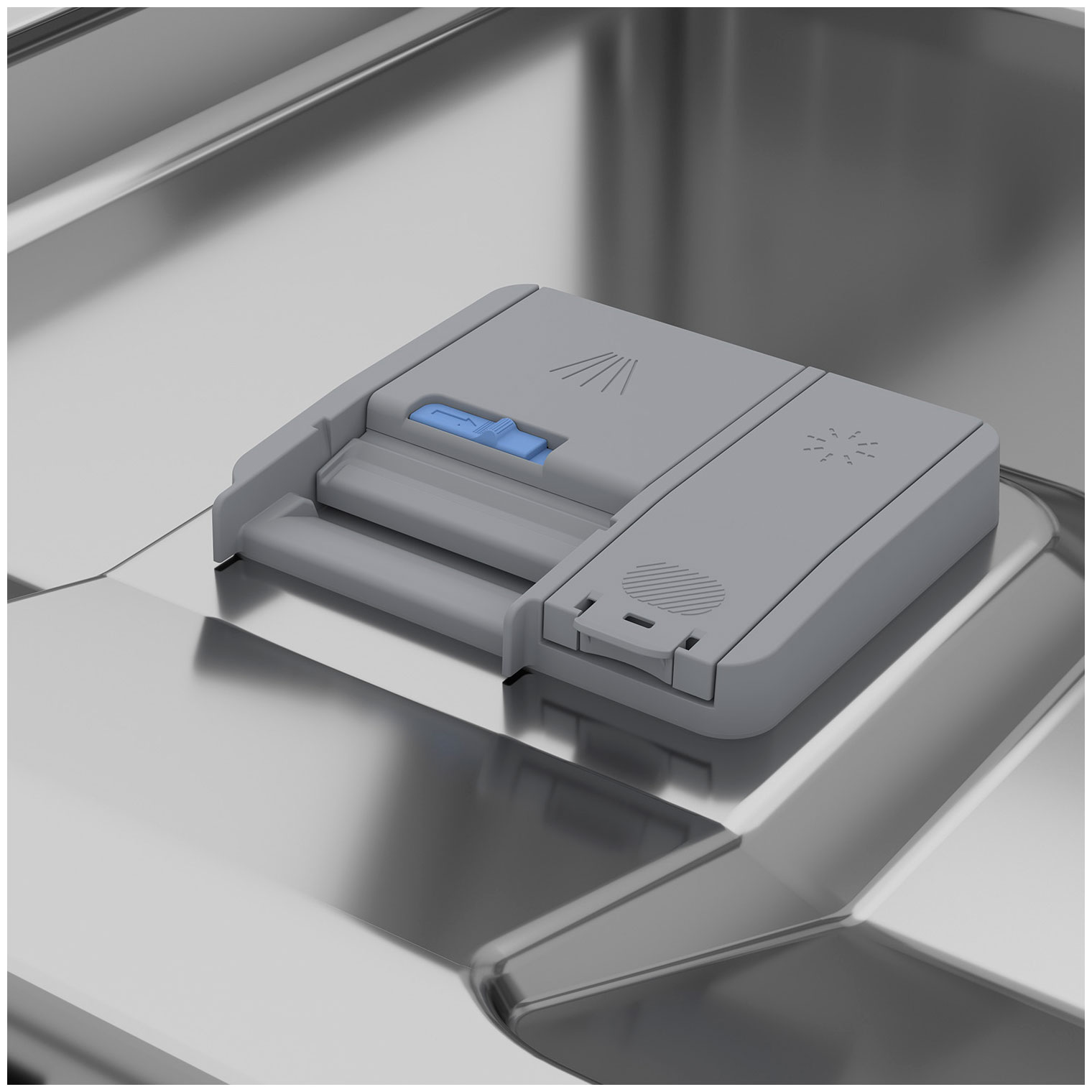 Комплектация включает складные держатели в нижней корзине, третью корзину и документацию, что делает использование машины еще более удобным и адаптируемым под ваши нужды. Световой индикатор на полу LedSpot и индикаторы отсутствия соли и ополаскивателя помогут вам всегда быть в курсе состояния машины.