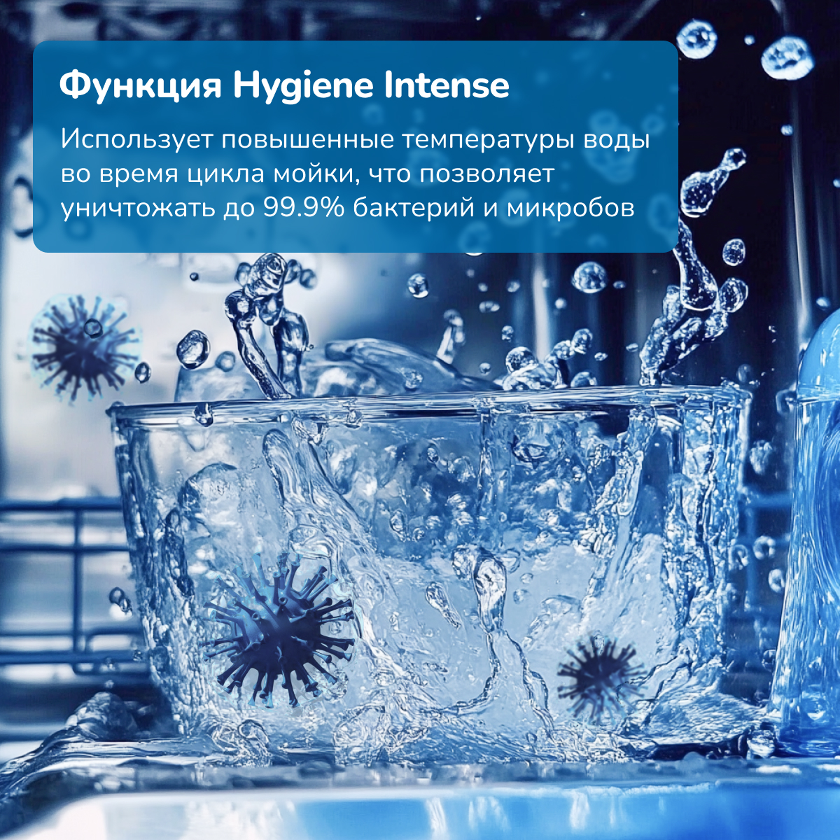 Машина предлагает 5 программ, включая экономичную, интенсивную и быструю мойку. Дополнительные функции, такие как Hygiene Intense и автоматическое открытие дверцы, обеспечивают максимальную гигиену и удобство. Уровень шума всего 45 дБ делает ее практически бесшумной. Система смягчения воды и частично металлический фильтр обеспечивают долговечность и надежность.