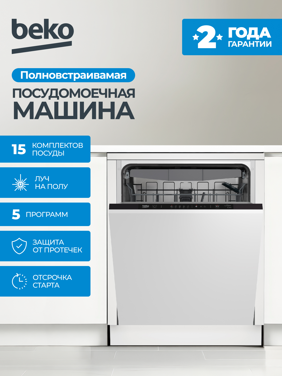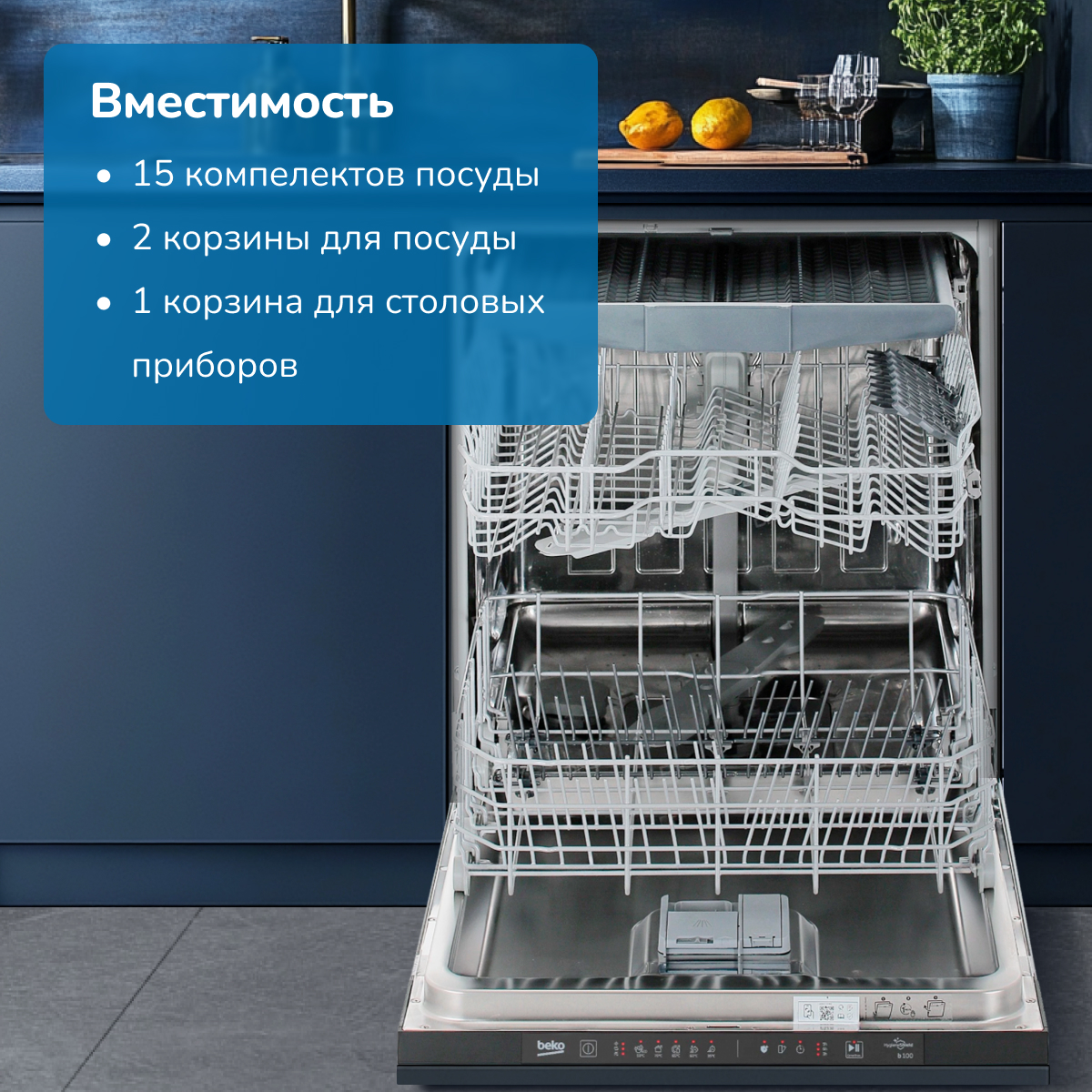 Встраиваемая посудомоечная машина Beko BDIN15531, которая сочетает в себе передовые технологии и высокую эффективность. Эта модель вмещает до 15 комплектов посуды и управляется с помощью удобной сенсорной панели и LED-дисплея. Класс мойки, сушки и энергопотребления — A, что гарантирует отличные результаты при минимальных затратах энергии.