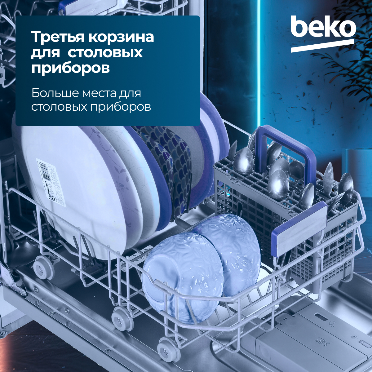 2 полки в верхней корзине, 2складных держателя в нижней корзине, 3 степени мойки посуды, 3-х позиционная регулировка высоты верхней корзины, LCD 2 Rows дисплей, Третья корзина, подсветка