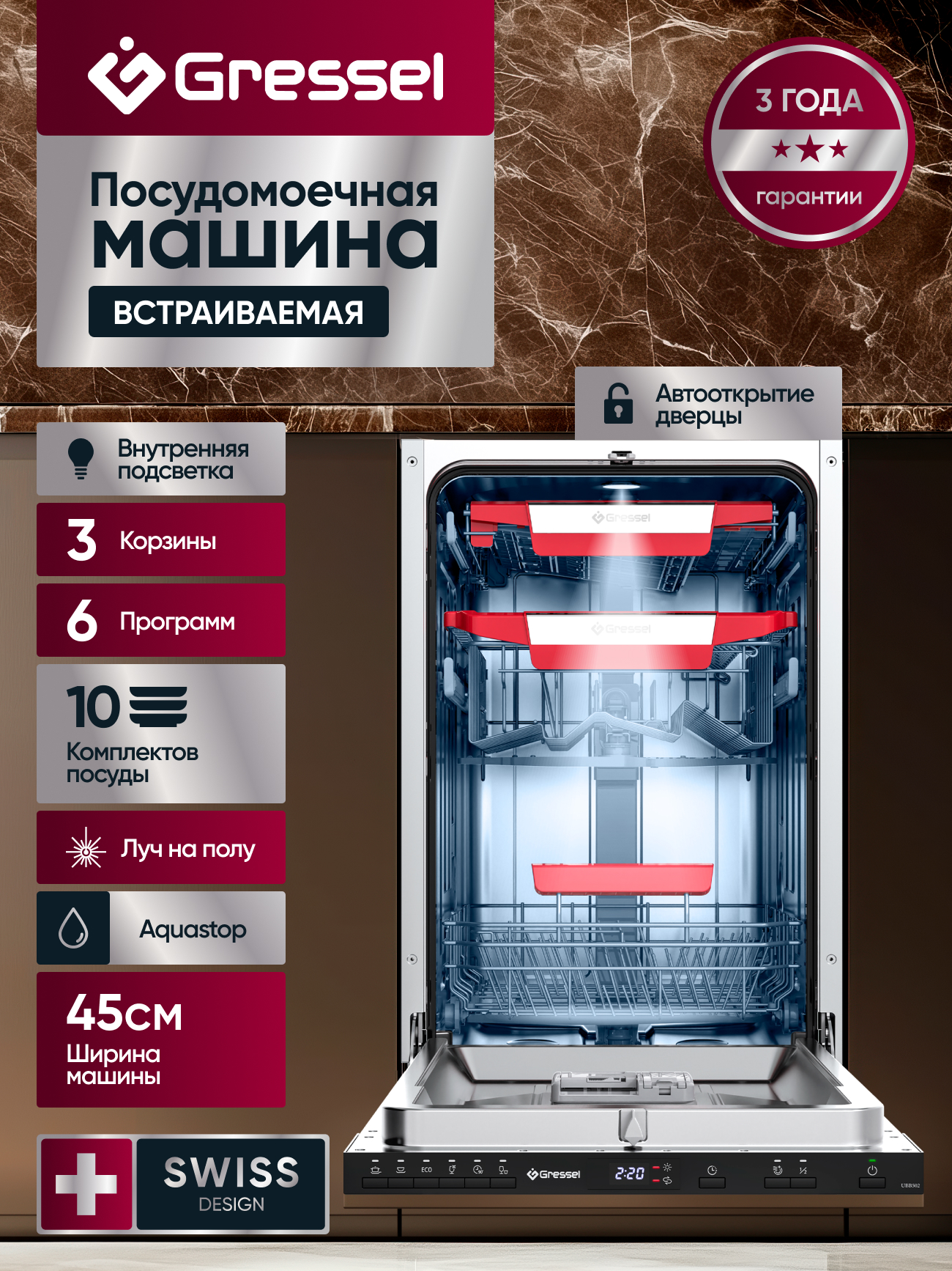 Посудомоечная машина, инструкция, гарантийный талон, сертификат дополнительной гарантии, шнур питания (с вилкой)