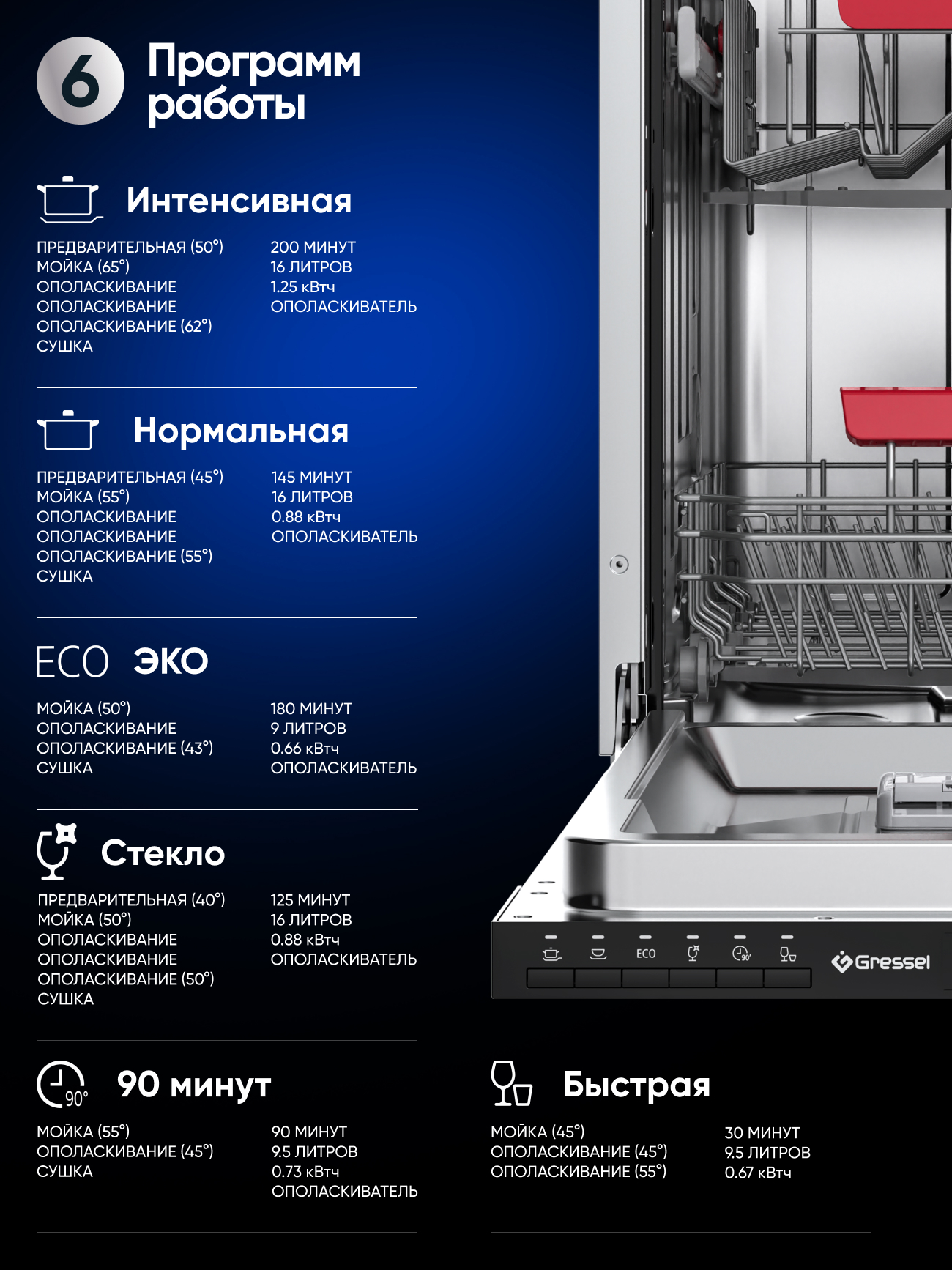 90 мин, Быстрая, Интенсивная, Нормальная, Стекло, Эко