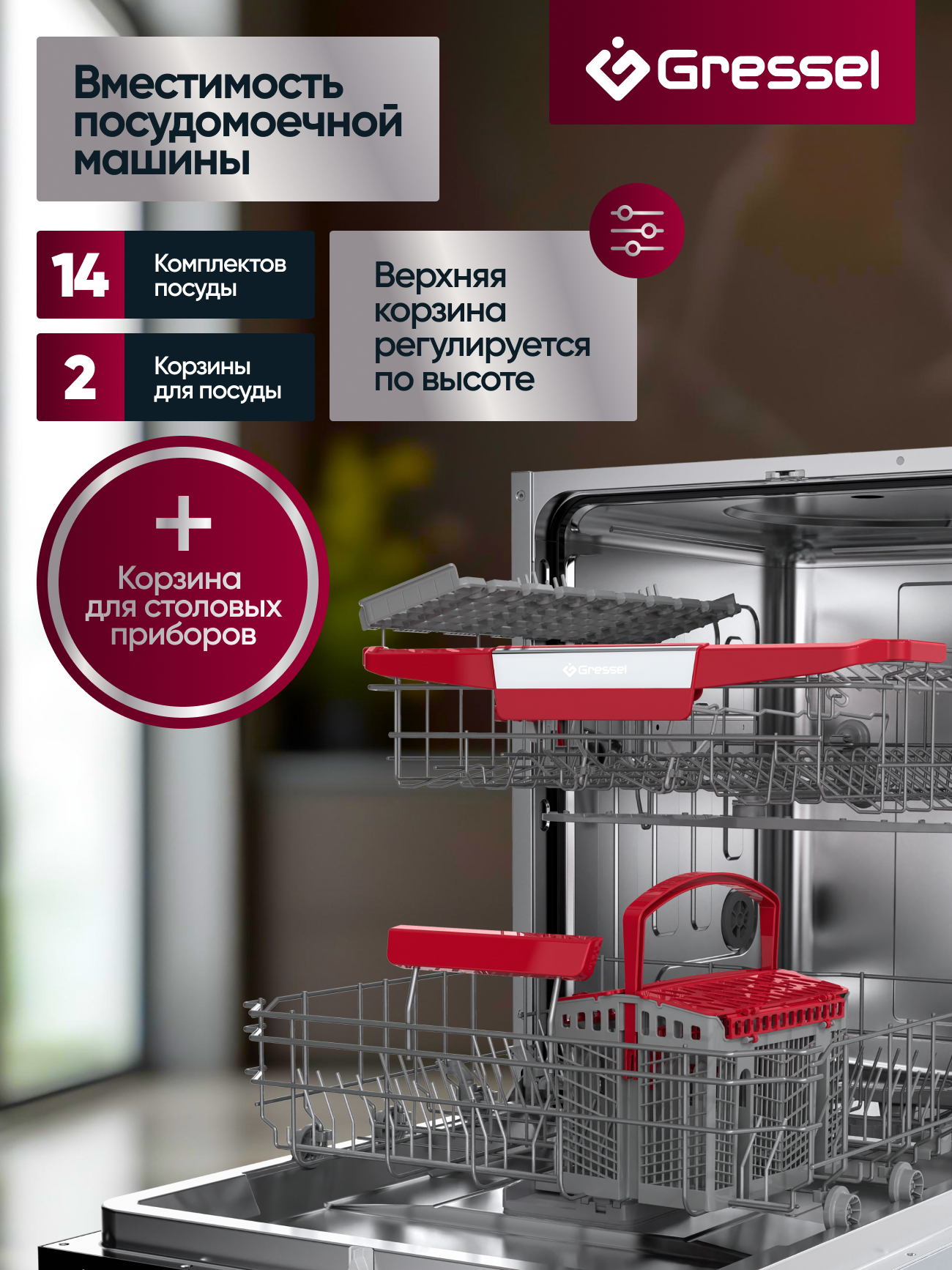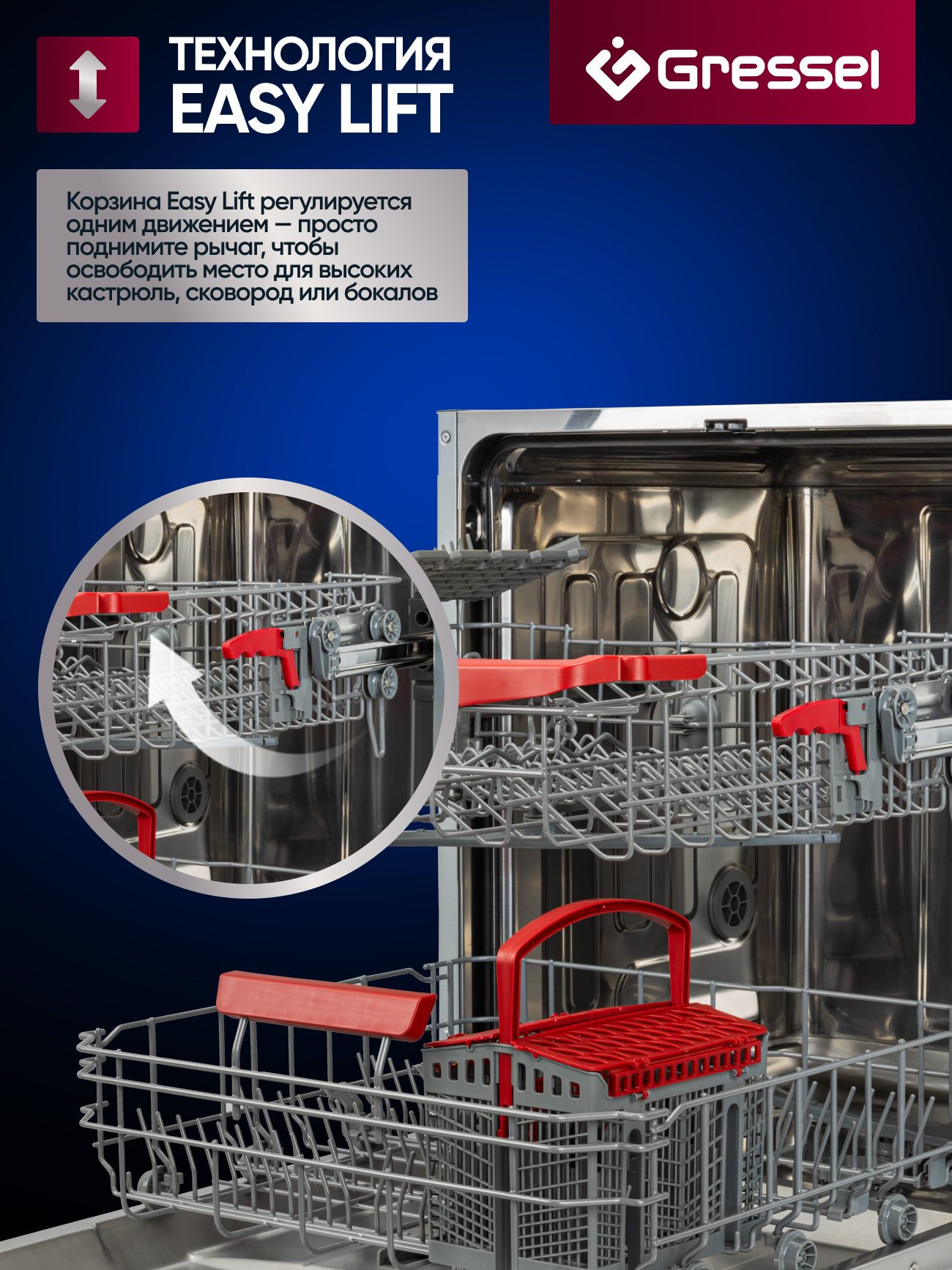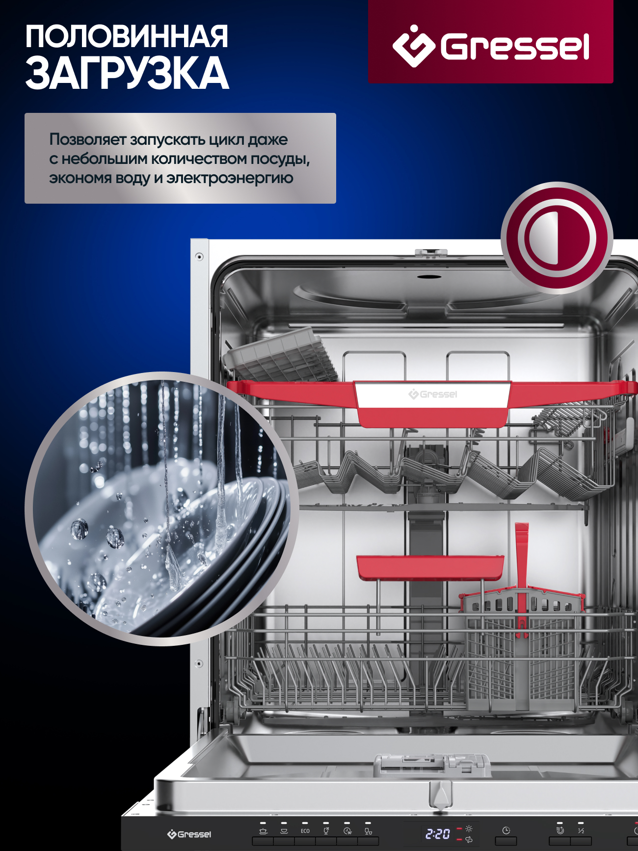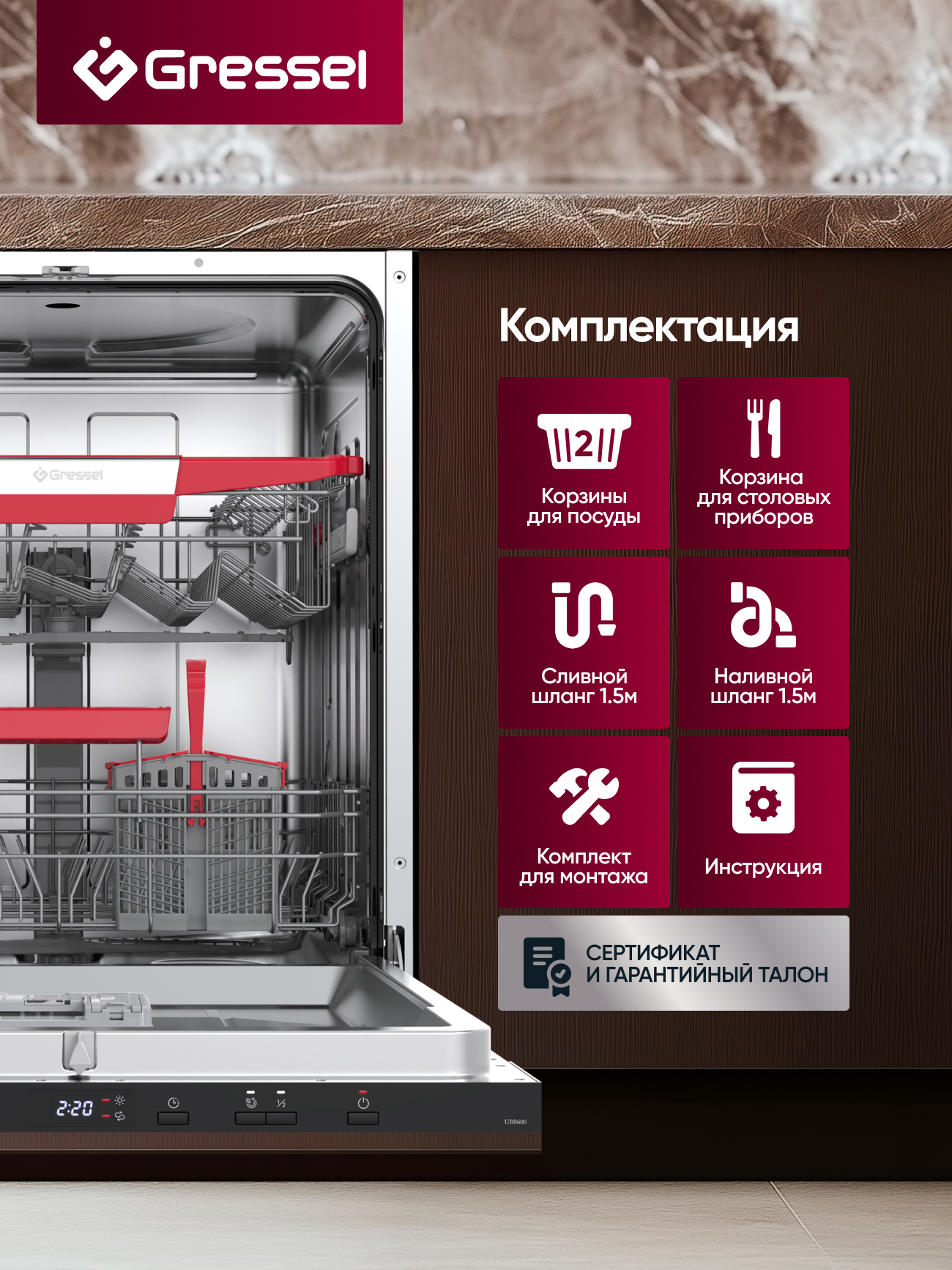 Корзины внутри UBB600 легко перестраиваются под разные типы посуды, а отдельный лоток для ножей увеличивает полезное пространство. При этом машина работает достаточно тихо, что делает её подходящим выбором и для квартир-студий. Если вам нужна надёжная и вместительная помощница, которая аккуратно спрячется за фасадом вашей кухни, Gressel UBB600 полностью оправдает ожидания.