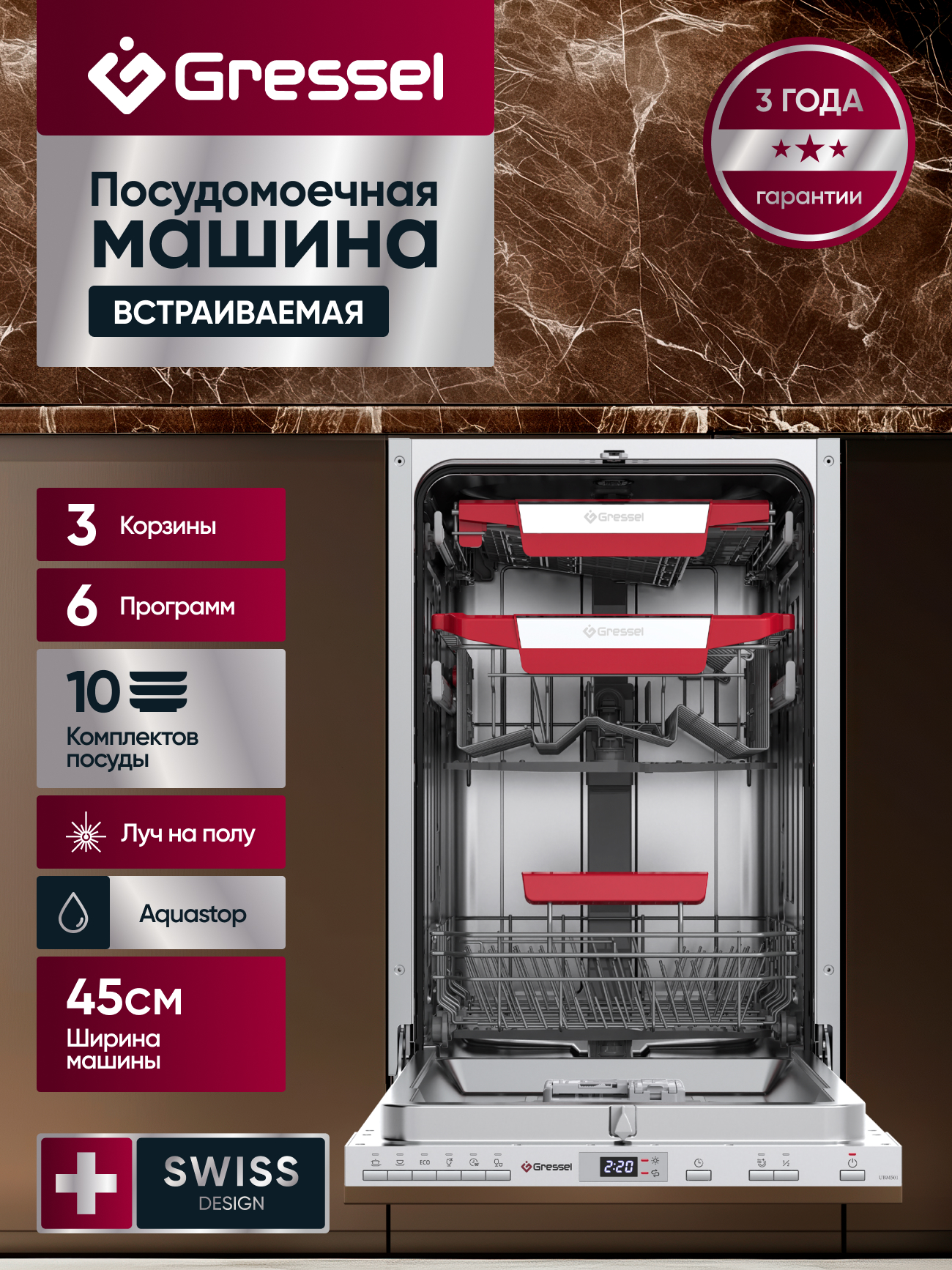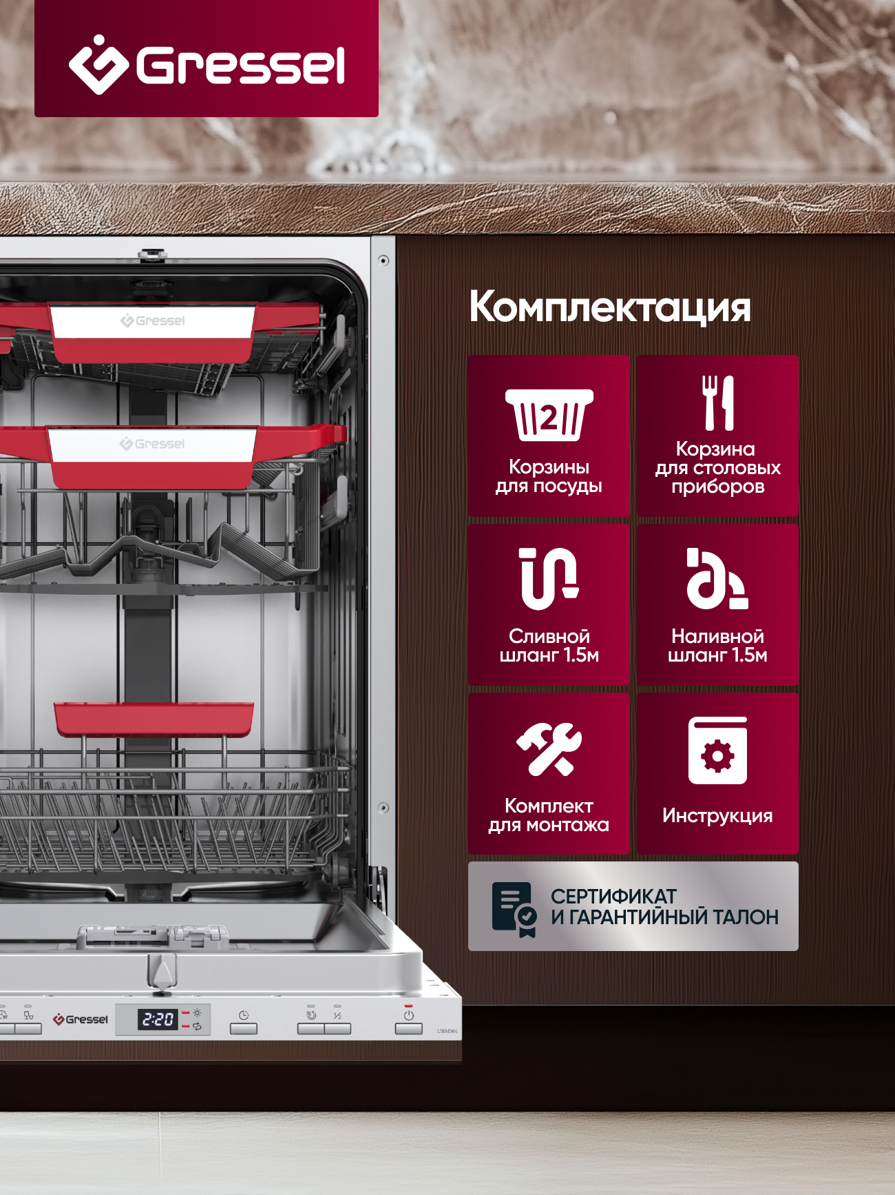 Посудомоечная машина, инструкция, гарантийный талон, сертификат дополнительной гарантии, шнур питания (с вилкой)