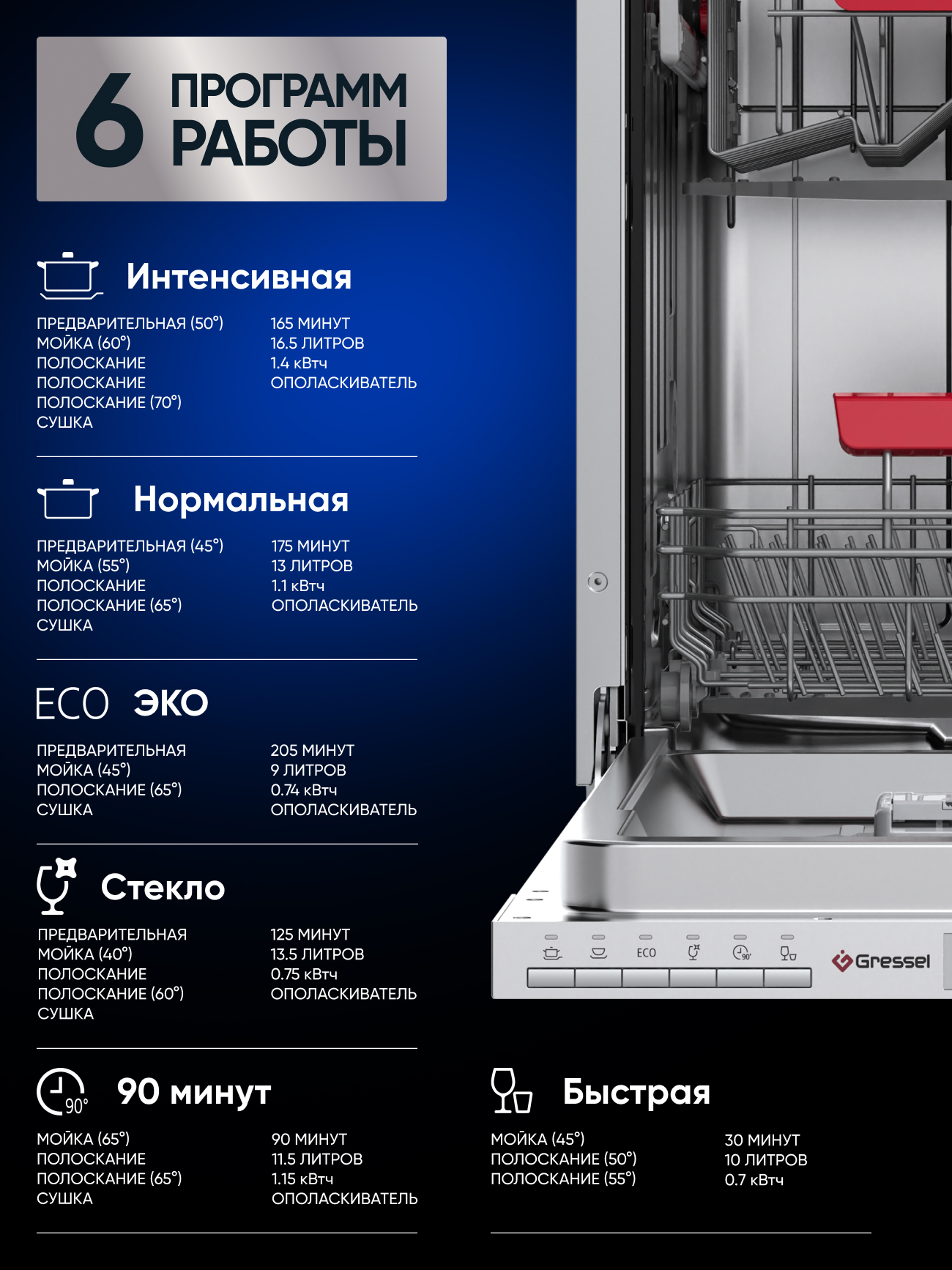 90 мин, Быстрая, Интенсивная, Нормальная, Стекло, Эко
