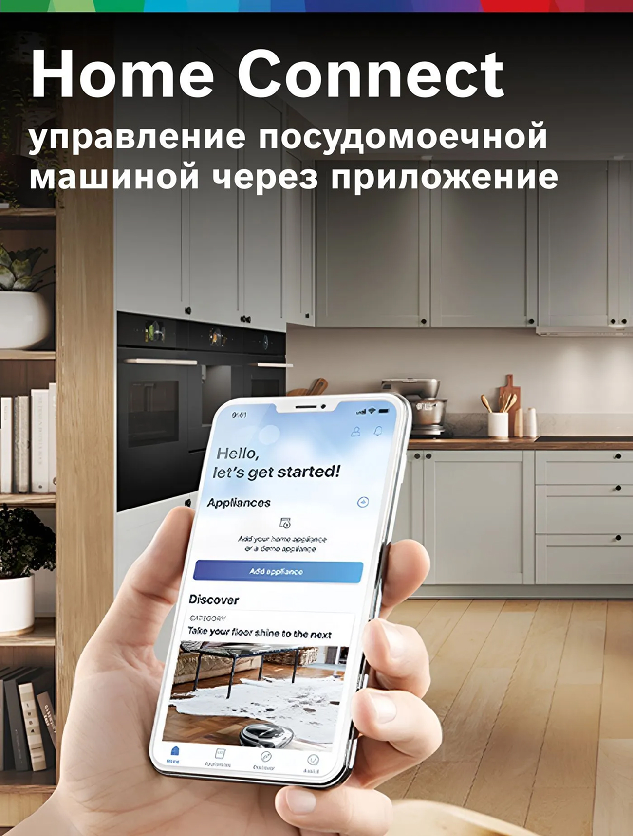 • Дистанционное управление позволяет управлять посудомоечной машиной через приложение Home Connect в любом месте и в любое время.