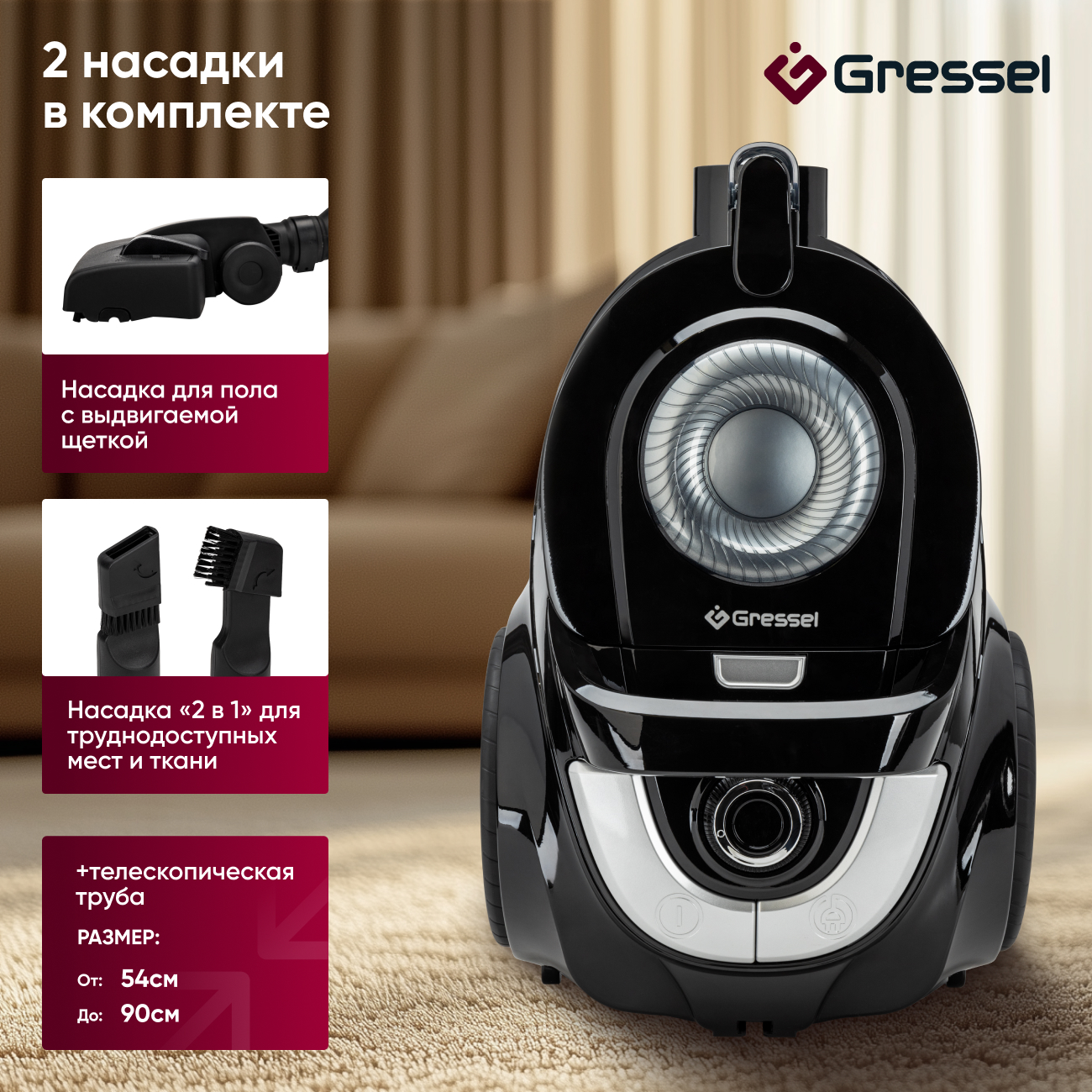 Бытовой пылесос Gressel RGVC-776203 с мультициклонной фильтрацией и регулятором мощности на ручке