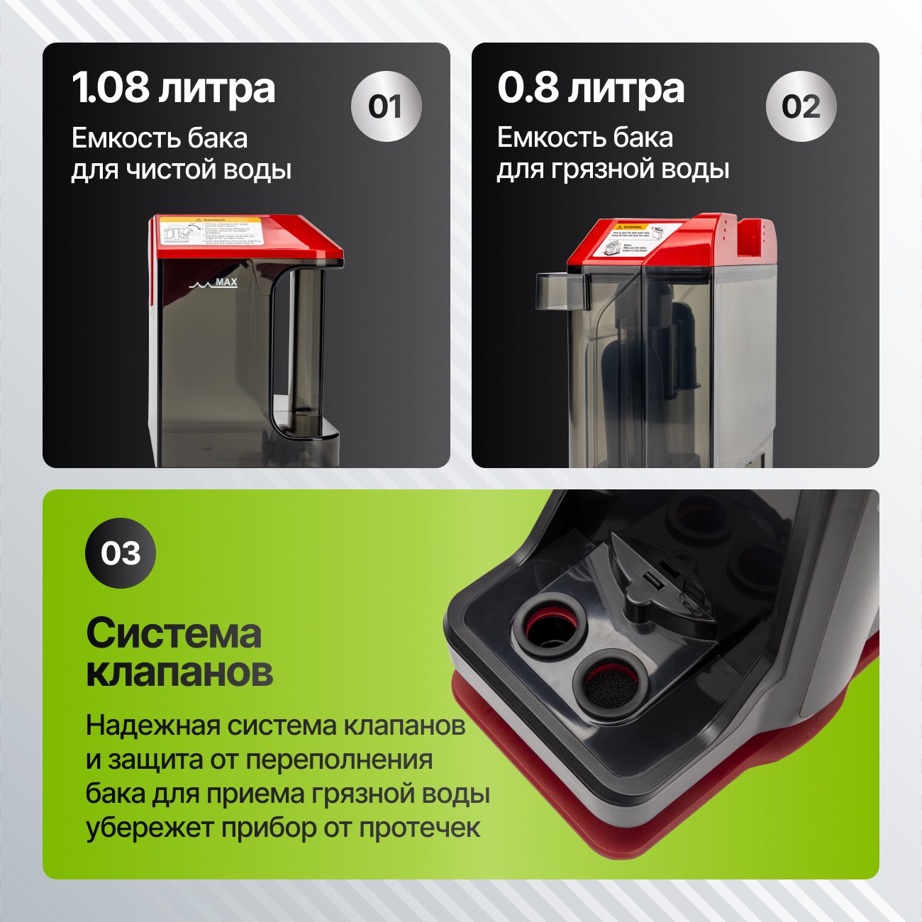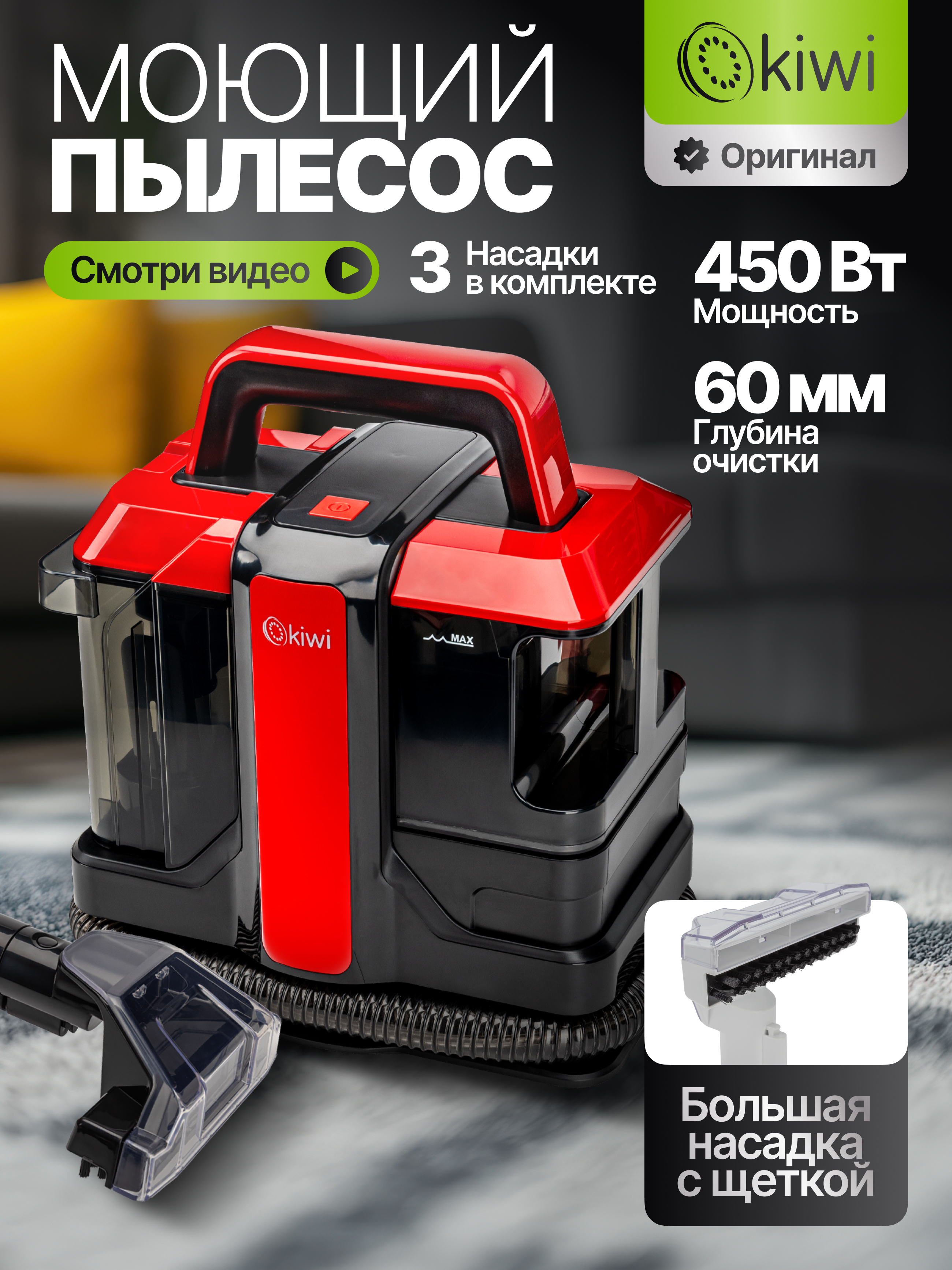 Моющий пылесос KIWI KCC-4322RB для химчистки ковров, мягкой мебели, салона авто, мягких игрушек, всех видов загрязнений