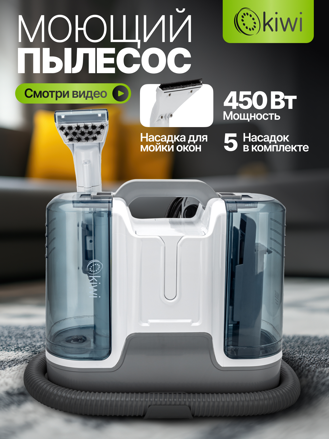 Моющий пылесос KIWI KCC-4323 для химчистки ковров, мягкой мебели, салона авто, для всех видов загрязнений