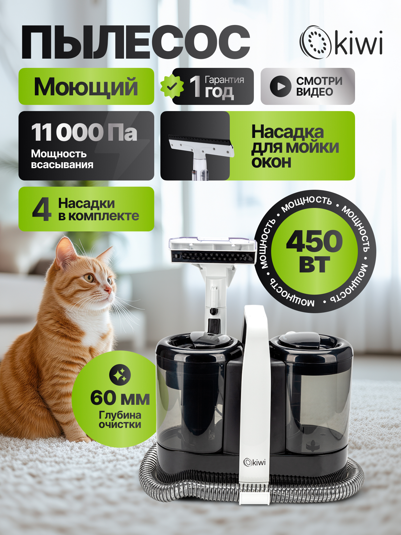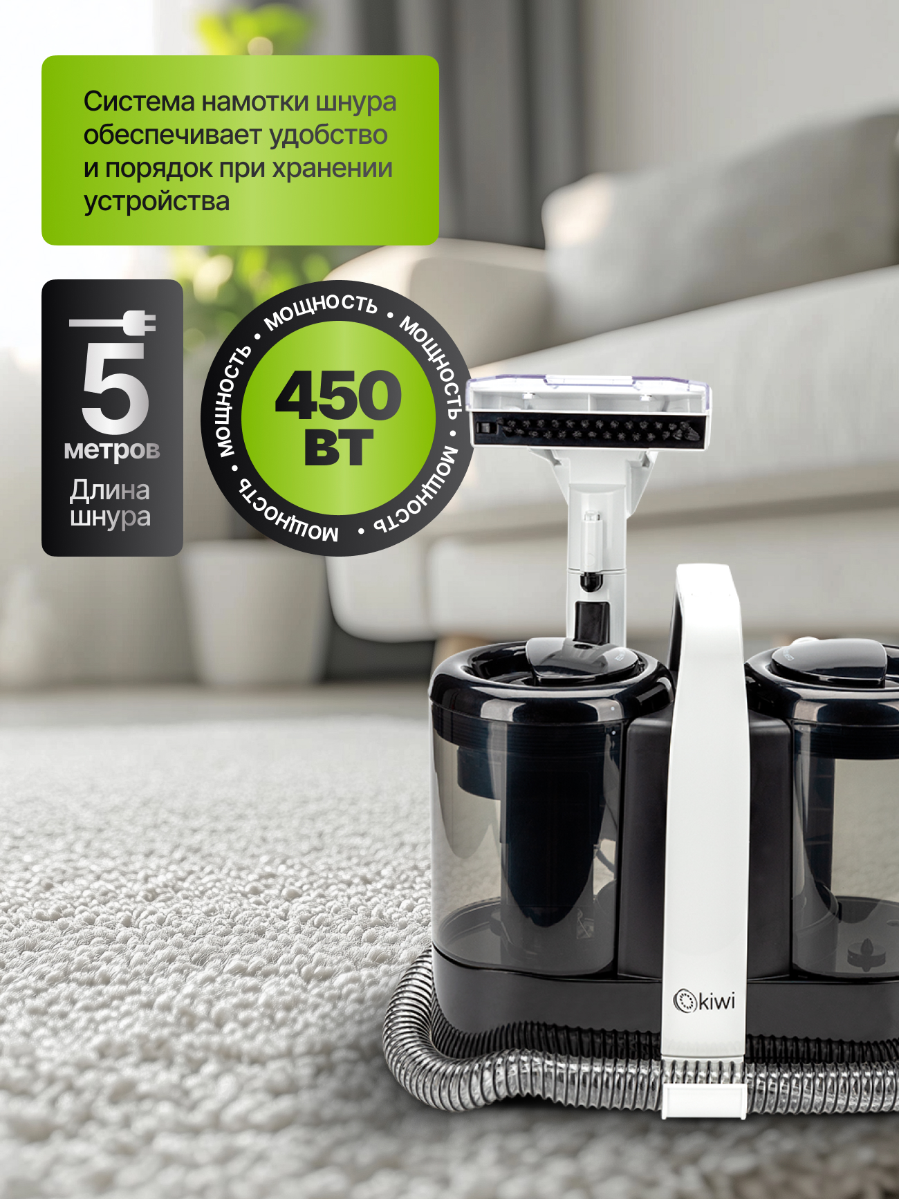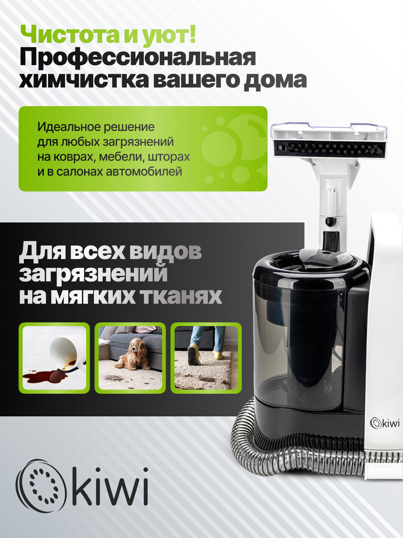 Моющий пылесос KIWI KCC-4324 для химчистки ковров, мягкой мебели, салона авто, для всех видов загрязнений