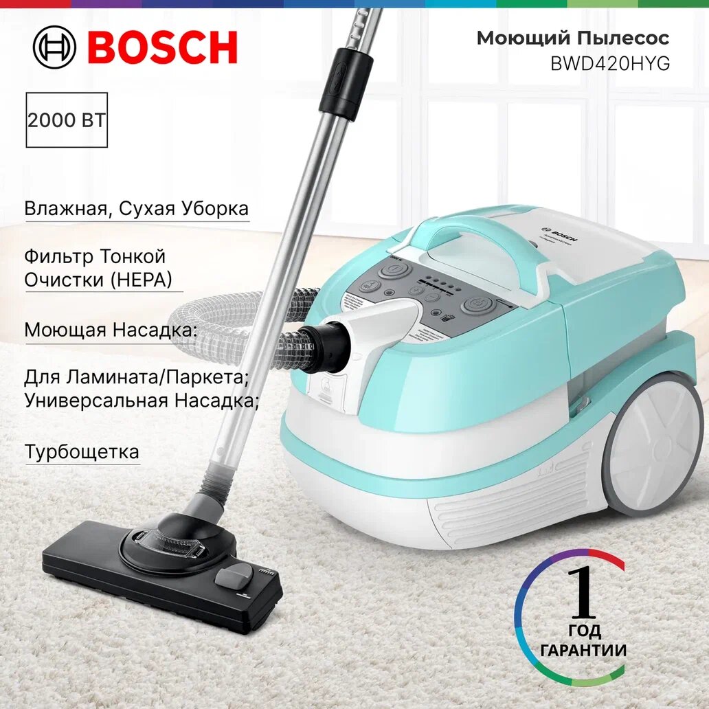 Пылесос BOSCH BWD420HYG / 2000 Вт, аквафильтр, влажная уборка, голубой