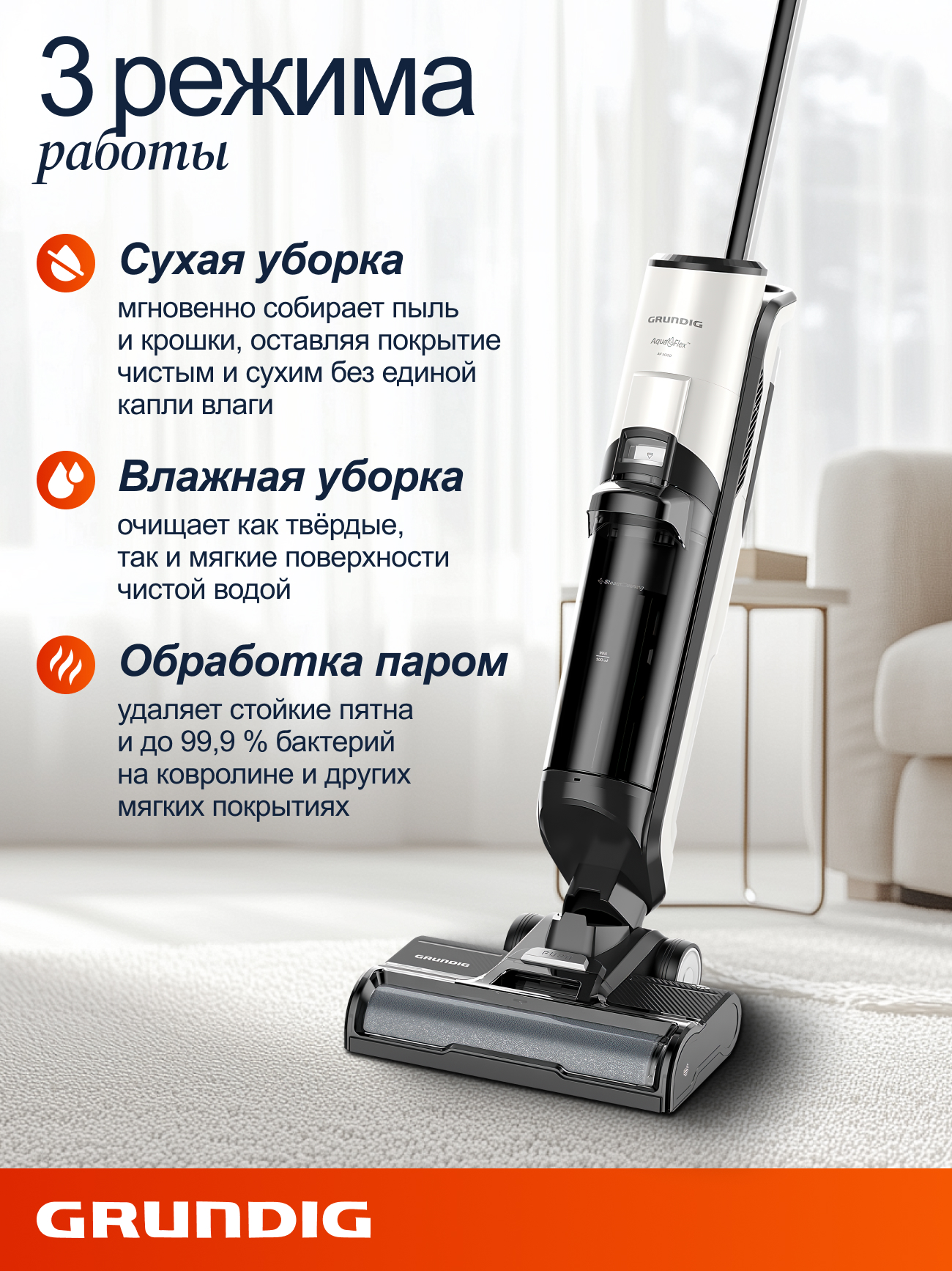 Grundig VCW 6270 – ваш персональный эксперт в области безупречной чистоты! Этот инновационный моющий пылесос создан для тех, кто ценит эффективность и комфорт в уборке.