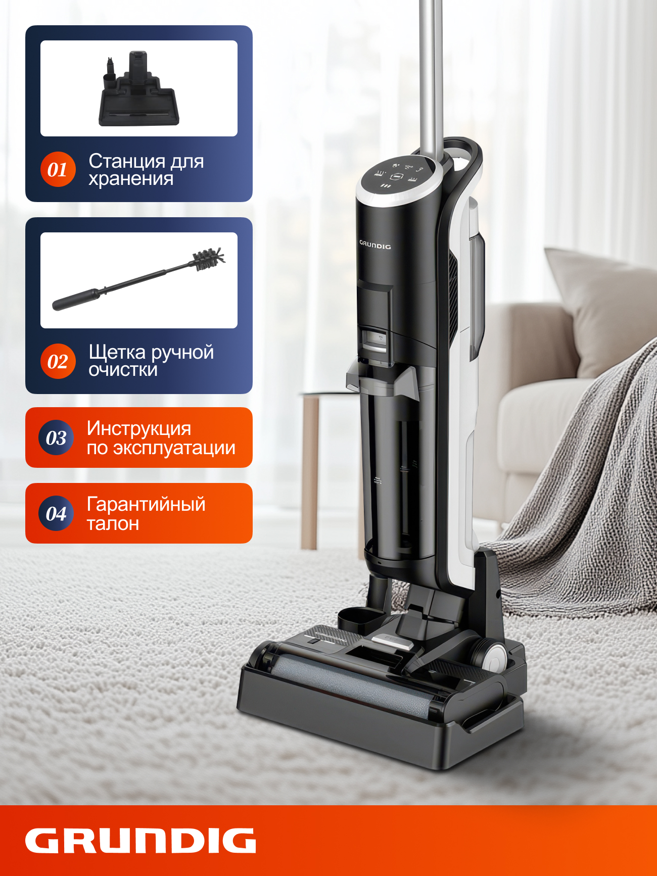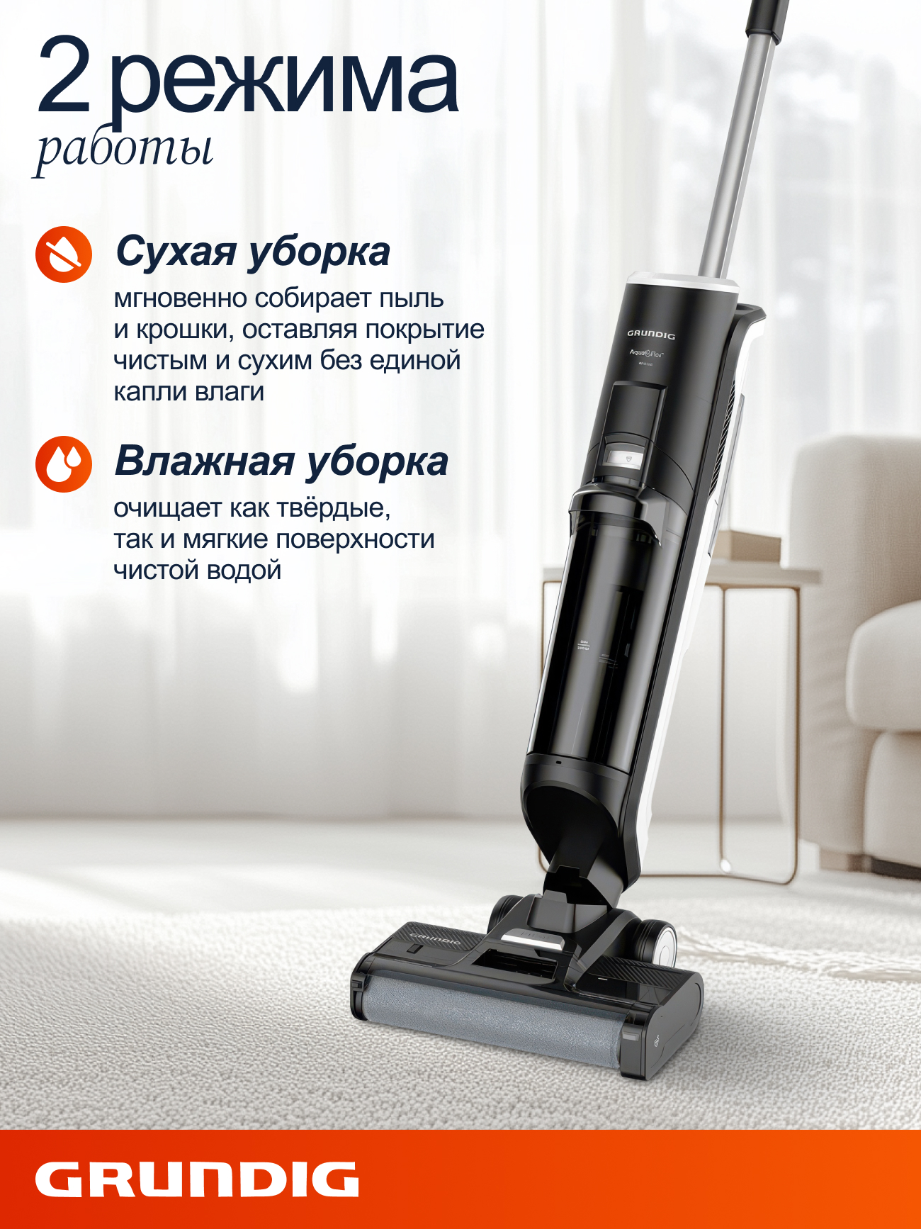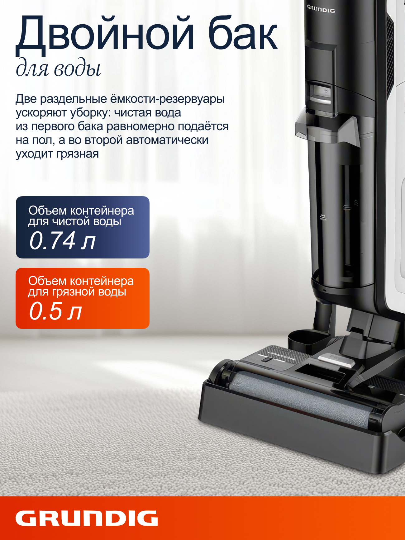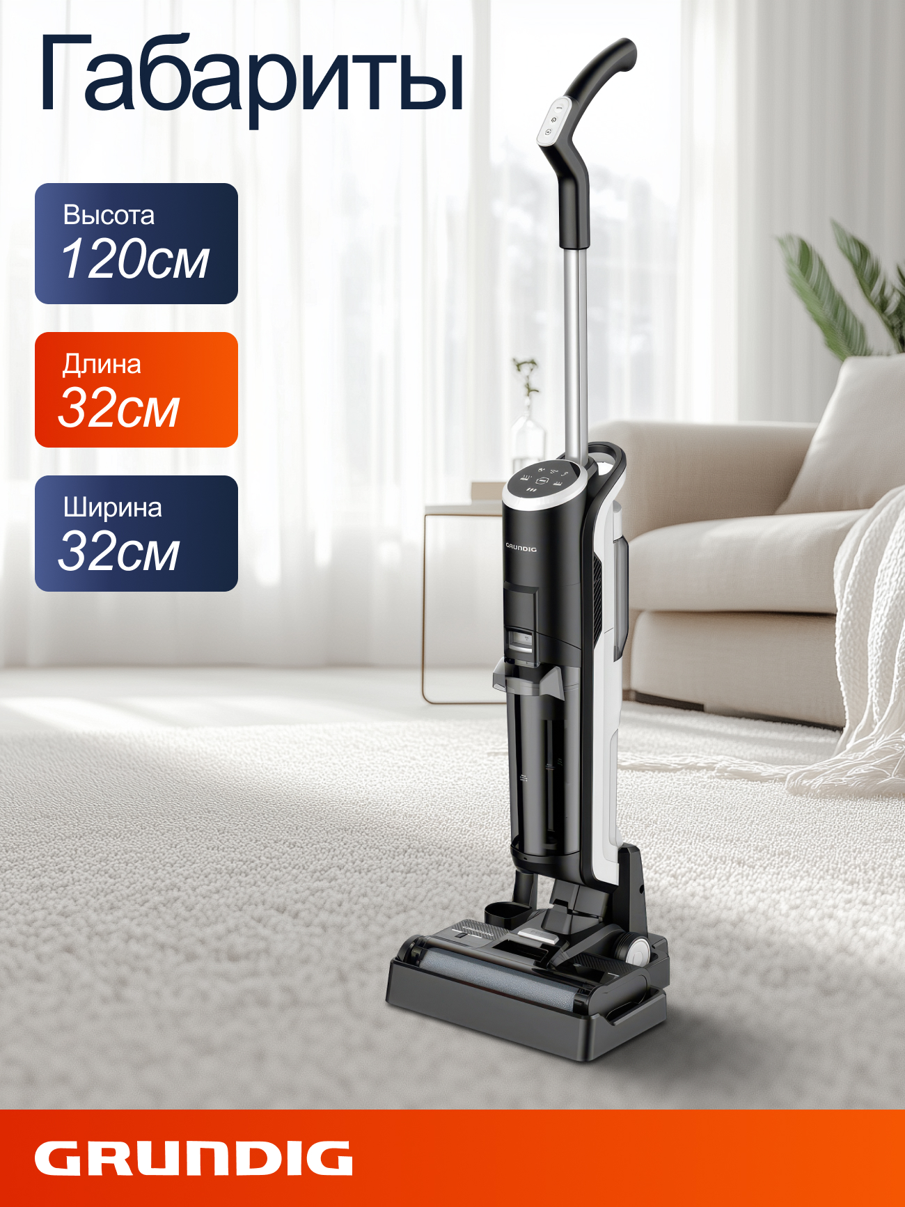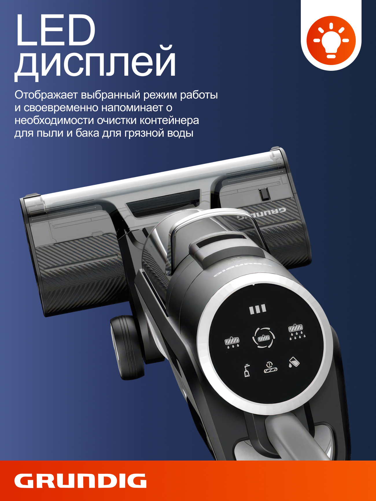 Пылесос моющий Grundig VCW 7230 - это современное устройство, которое сочетает в себе функции сухой и влажной уборки. Он оснащен мощным аккумулятором на 4000 мАч, что обеспечивает до 25 минут непрерывной работы.