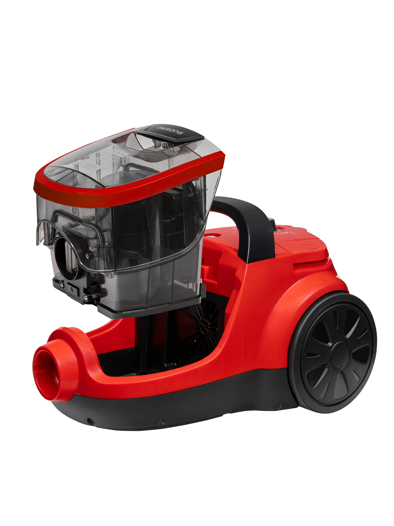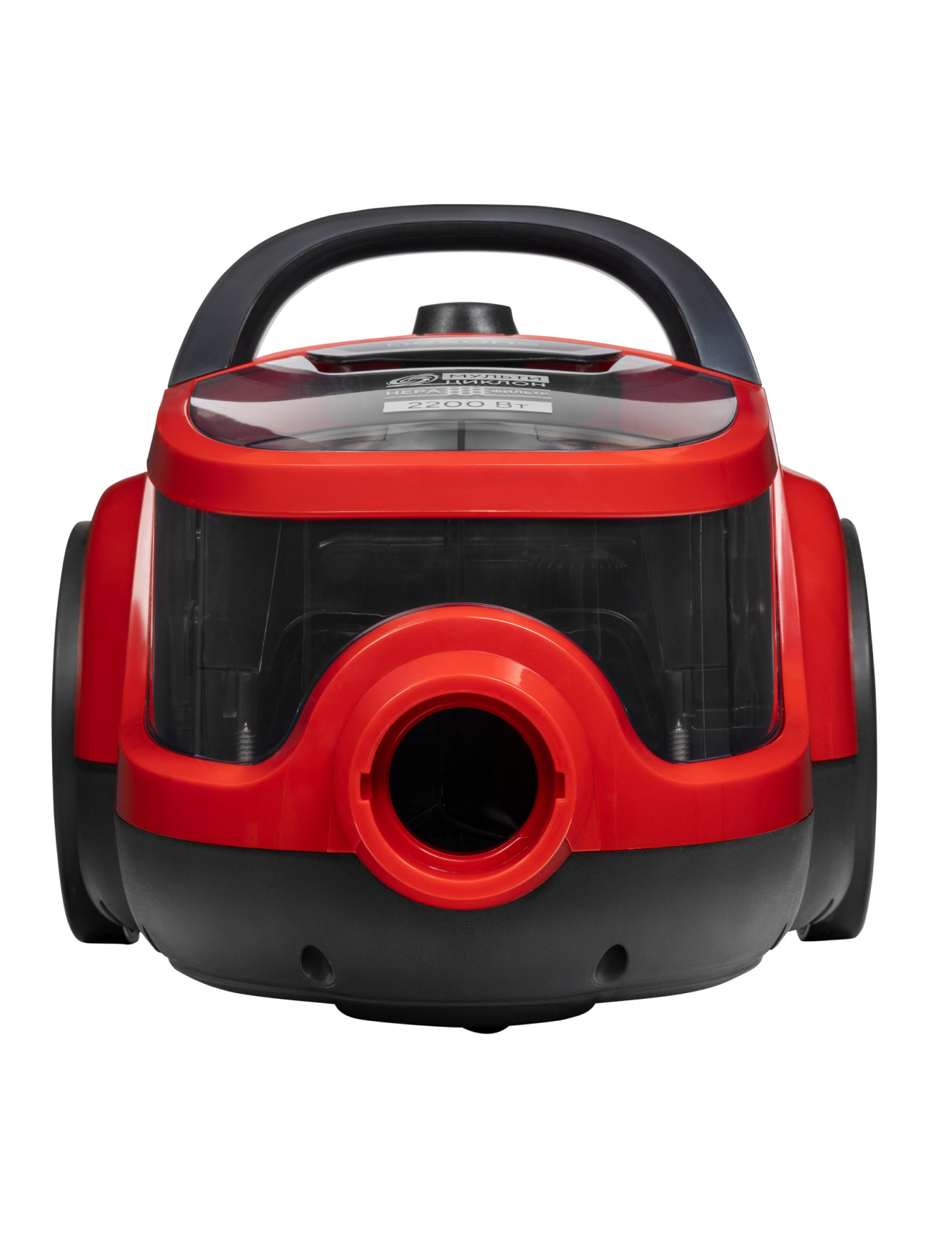Высота: 27 см; Глубина: 29,5 см; Работает от сети: да; Тип питания: от бытовой электросети; Цвет товара: красный; Ширина: 40,8 см; Потребляемая мощность: 2200 Вт; Размеры пылесоса (ШxГxВ): 40,8х29,5х27 см; Тип: бытовой пылесос; Вес: 5,1 кг; Мощность всасывания: 350 Вт; Насадки в комплекте: Универсальная, Щелевая насадка, Для мебели; Уборка: сухая; Труба всасывания: телескопическая; Тип пылесборника: контейнер; Объем пылесборника: 2 л; Фильтр тонкой очистки: HEPA; Комплектация: Пылесос с установленными фильтрами и контейнером-пылесборником - 1 шт. Гибкий шланг - 1 шт. Металлическая телескопическая трубка - 1 шт. Универсальная двухпозиционная щетка «ковер-пол» - 1 шт. Щелевая насадка - 1 шт. Насадка для обивки ; Уровень шума: 79 дБ; Автоматическое сматывание шнура: есть; Длина сетевого шнура: 5.5 м; Дополнительные функции: Мультициклон, автоматическая смотка шнура